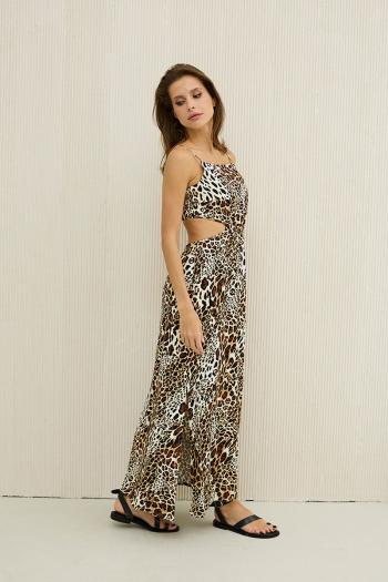 Платье женское приталенного силуэта. Выполнено из 100% вискозы отрезное по линии талии. Лиф платья на бретелях с фиксаторами. По спинке лифа - потайная молния. На уровне талии фигурный вырез. По переду кулиса с резинкой, по боковым швам высокие разрезы с закрытими срезами. Комментарии к товару