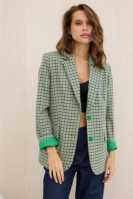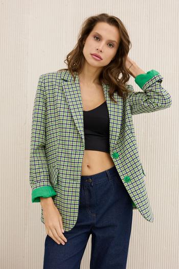 Жакет женский полуприлегающего силуэта, выполненный из костюмной ткани высокого качества. Жакет с центральной застежкой, рукав втачной двухшовный, внизу рукава шлица. Воротник стояче - отложной с отворотами лацканов. По переду жакета также функциональные карманы с клапанами. Жакет на подкладке.