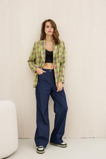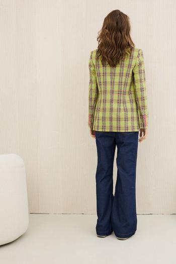 Жакет женский полуприлегающего силуэта, выполненный из костюмной ткани высокого качества. Жакет с центральной застежкой, рукав втачной двухшовный, внизу рукава шлица. Воротник стояче - отложной с отворотами лацканов. По переду жакета также функциональные карманы с клапанами. Жакет на подкладке.