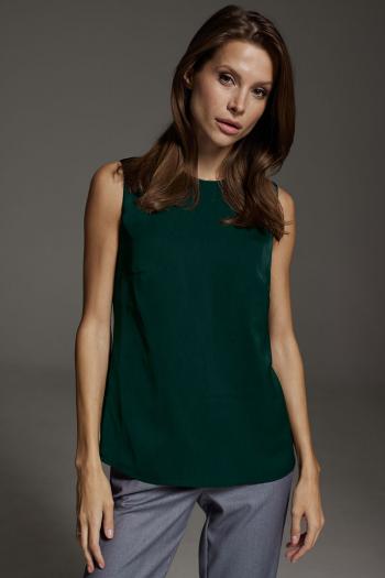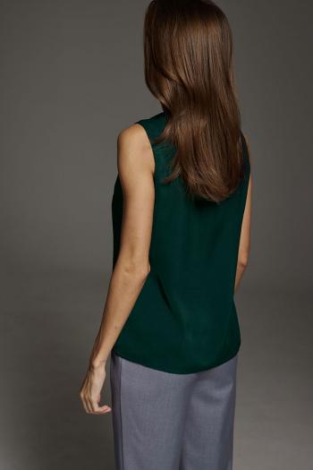 Топ женский полуприлегающего силуэта. Выполнен из искуственного шелка высокого качества. Горловина округлой формы, застежка по спинке в виде окантованной, которая застегивается на пуговицу. Комментарии к товару