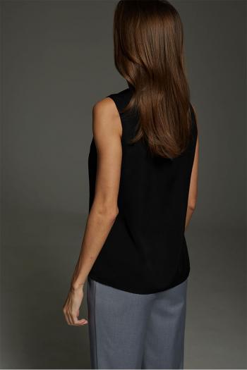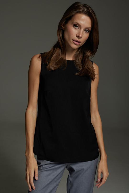 Топ женский полуприлегающего силуэта. Выполнен из искуственного шелка высокого качества. Горловина округлой формы, застежка по спинке в виде окантованной, которая застегивается на пуговицу. Комментарии к товару