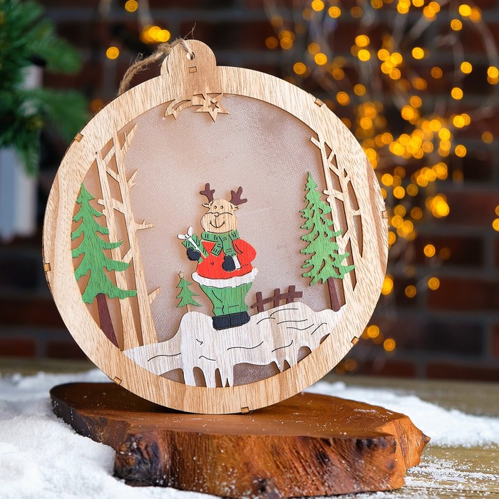 Декор с подсветкой «Олень с подарком» — это стильное новогоднее украшение, которое добавит в ваш дом атмосферу уюта и волшебства. Изделие выполнено из дерева и оснащено мягкой жёлтой подсветкой, работающей от батареек, что делает его удобным и безопасным для использования в любом месте.