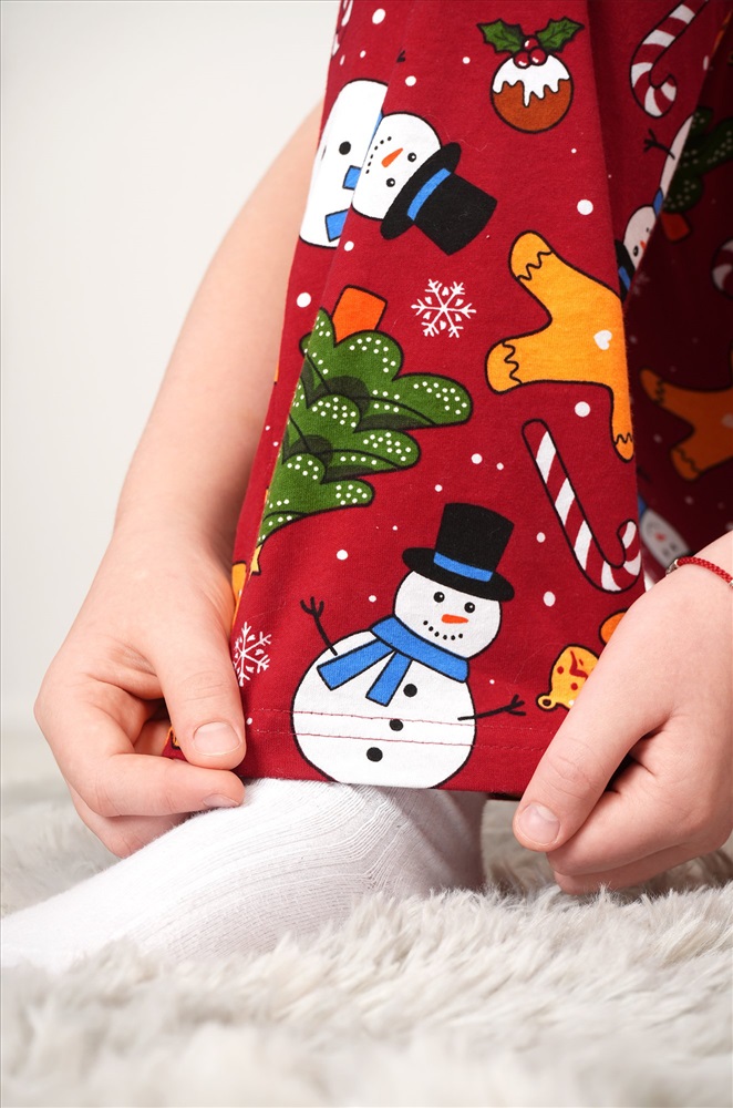 Детская новогодняя пижама с брюками выполнена из натурального 100% хлопка. Яркий красный цвет и праздничный принт создают атмосферу праздника и поднимают настроение, а мягкий трикотаж дарит комфорт. Домашний комплект двойка для мальчиков и девочек станет чудесным подарком на Новый год или Рождество.