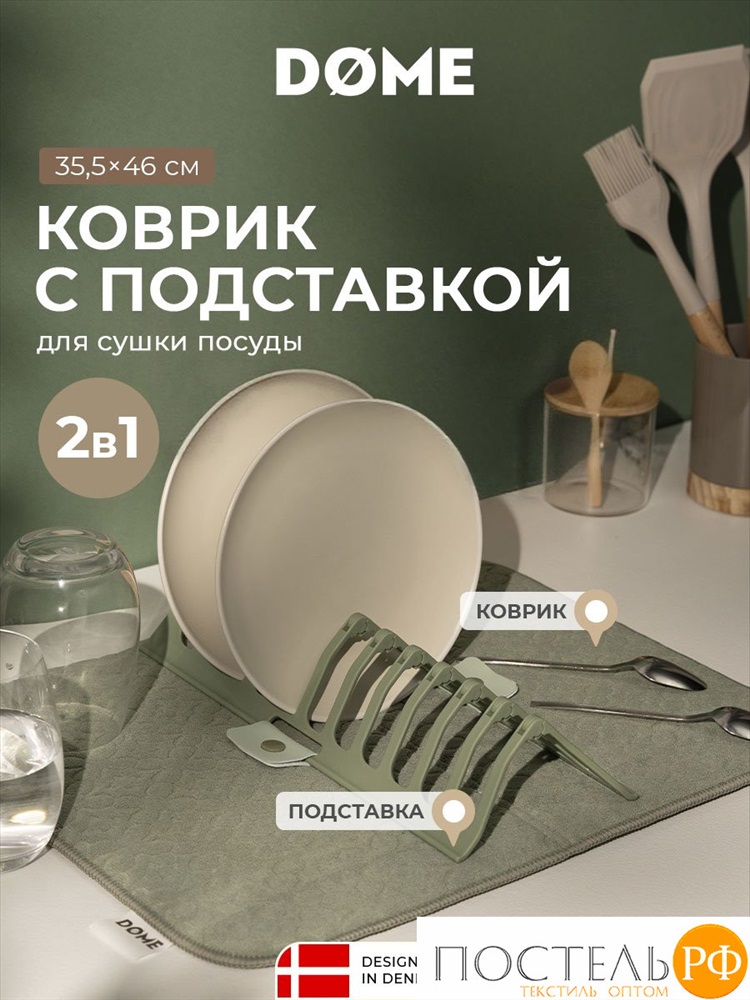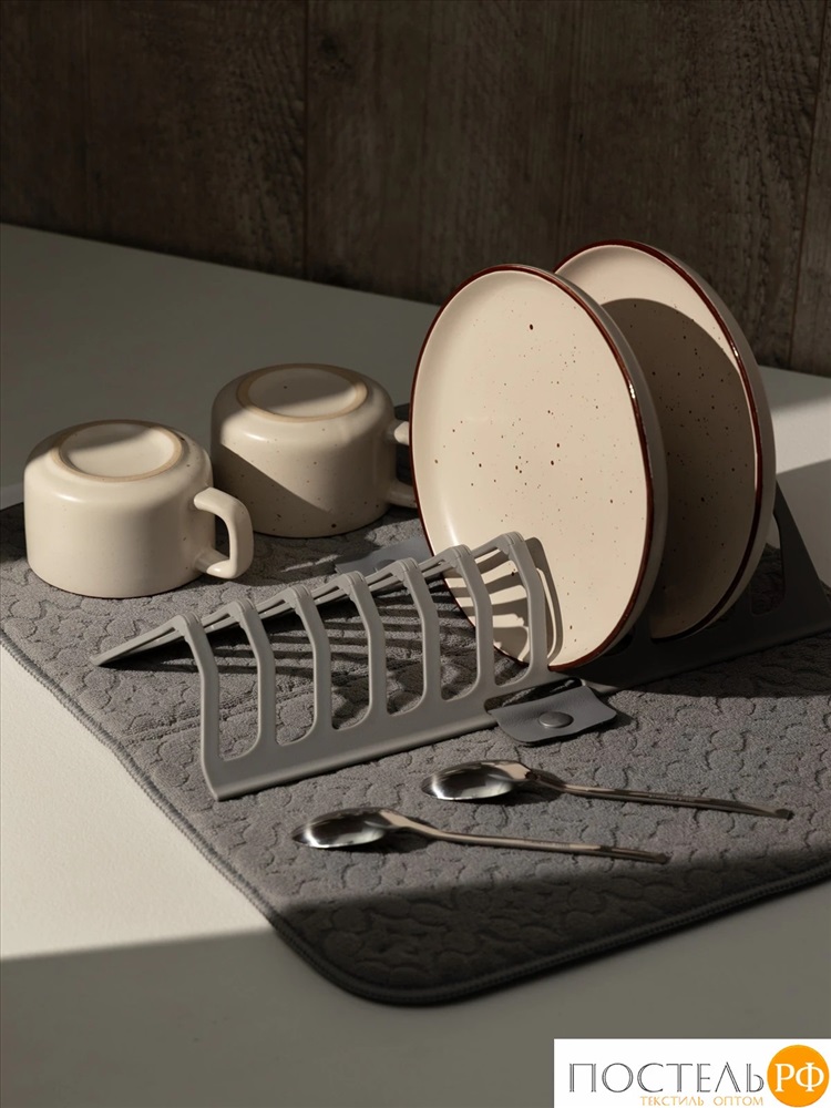 Кухонный коврик с подставкой для посуды Ассенс от бренда Dome — идеальное сочетание удобства и стиля. Мягкая, износостойкая и влагопоглощающая поверхность обеспечивает комфорт во время мытья посуды, а встроенная подставка помогает аккуратно разместить посуду и сэкономить пространство.