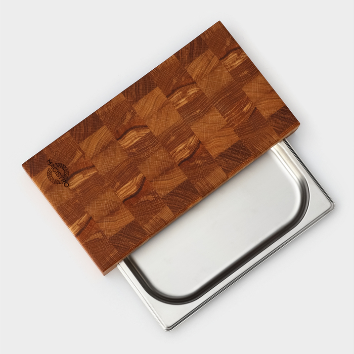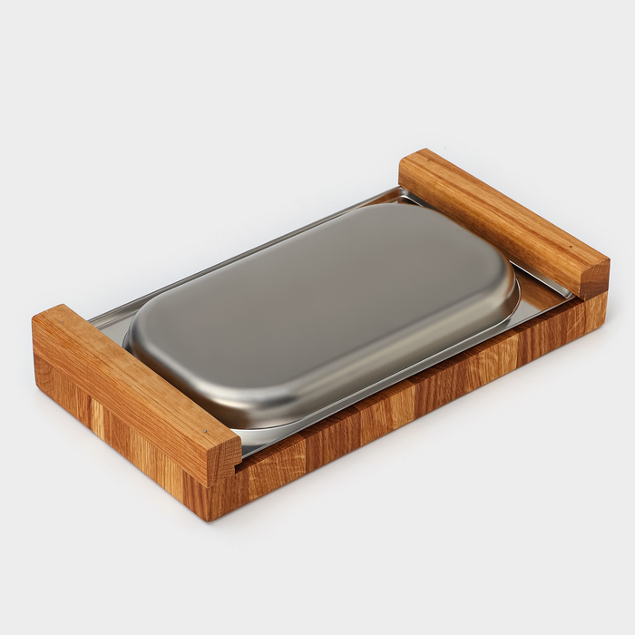 Производитель: Magistro; Габариты: 35,5 x 20 x 6; Страна: Россия; В боксе: 5 шт; Состав: Металл, дуб; Материалы: металл, дуб; Фасовка: по 1 шт; Индивидуальная упаковка: Картонная коробка; Сертификат: Не подлежит сертификации; Набор: Нет; Цвет: Коричневый; Длина, см: 30,5; Ширина, см: 16,5; В наборе, шт.: 1; Рисунок: Нет; Вид дерева: Дуб; Материал: Дерево; Из натурального дерева: Да; Толщина, см: 5; Тип нанесения рисунка: Без нанесения; Можно мыть в посудомоечной машине: Нет; Особенности: С лотком; Фиксированная цена: Да