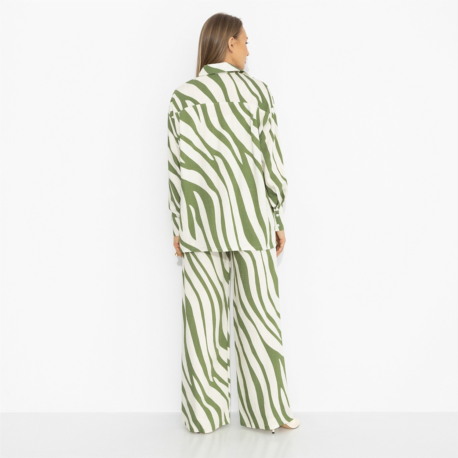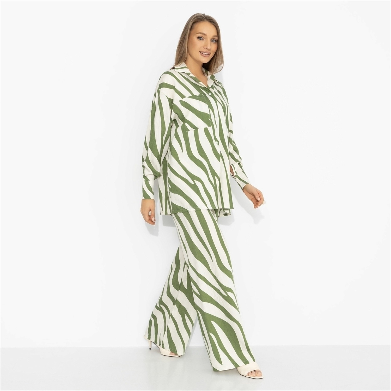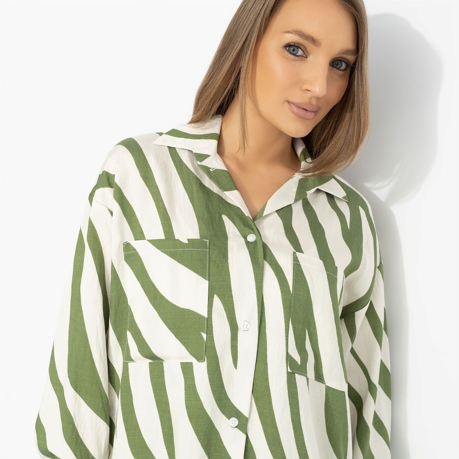 Взрослый подход к стилю: спокойная уверенность, чистая эстетика, природный вайб без лишнего декора. Свободный силуэт струится, мягкая вискоза приятно ложится по телу, нейлон добавляет форму. Зелёный принт звучит свежо и живо, гармонируя с твоей естественной привлекательностью. Красиво – и точка.