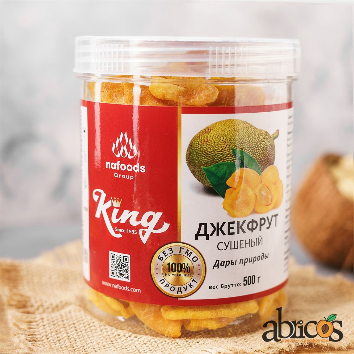 Джекфрут сушеный King в банке 500гр купить в Санкт-Петербурге (СПб) дешевоДжекфрут натуральный сушеный. Натуральный продукт Вьетнама. Плод джекфрута - ценный источник калия, способствующего понижению артериального давления, а также благотворно влияющего на работу сердечной мышцы. К тому же, мякоть фрукта обладает грубой клетчаткой, которая способна снижать синтез холестерина и скорость всасывания дисахаридов в кишечнике. Уровень магния в джекфруте благотворно влияет на состояние нервной системы. Джекфрут является также богатым источником витамина С, оказывает противовоспалительный и антибактериальный эффект, поддерживает активность лейкоцитов. Обладая антиоксидантными свойствами, аскорбиновая кислота укрепляет иммунную систему. Джекфрут Кинг сушеный 500гр в банке купить и другие вкусные продукты Кинг в нашем магазине легко и удобно. Продукты Кинг - это сушеные экзотические фрукты из Вьетнама. Продукты King изготавливаются компанией Nafoods (НАФУДС) во Вьетнаме. В нашем магазине представлена вся линейка сухофруктов King Nafoods.Комментарии к товару
