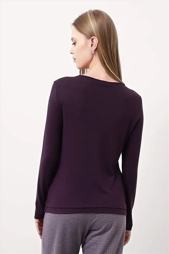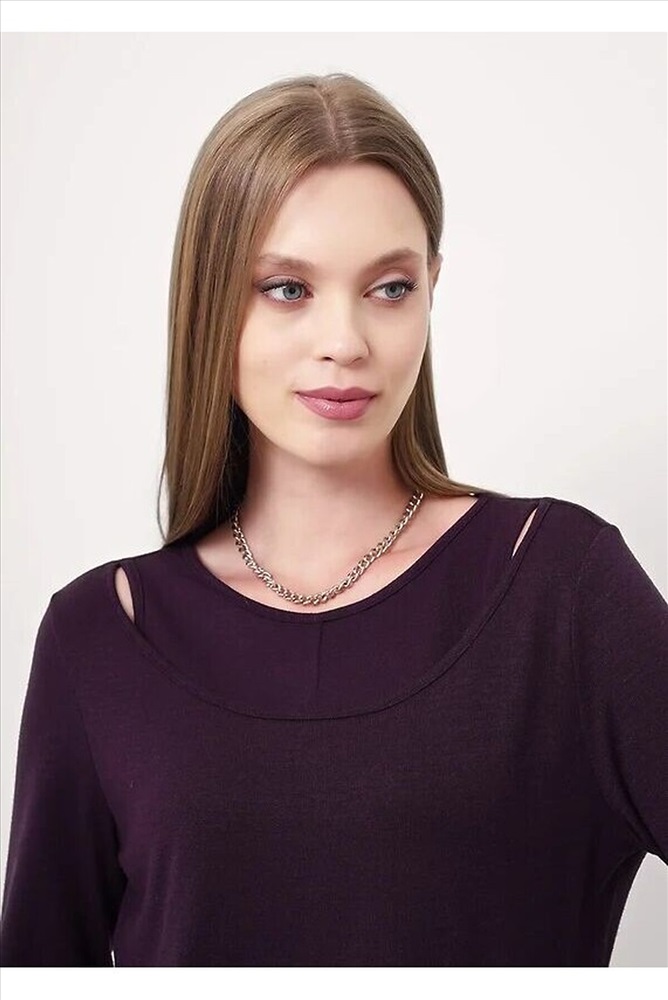 Джемпер из трикотажного полотна вискоза вязанная. Округлая горловина с окантовкой. Втачной длинный рукав. Перед двойной (нижний слой со средним швом и разрезом внизу).