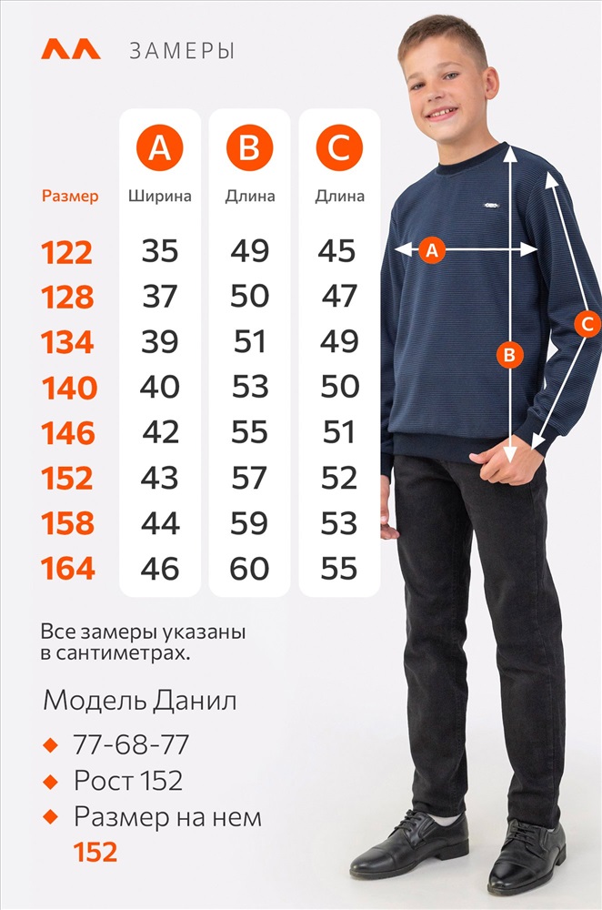 Размер 128: длина:50 см; ширина:37 см; длина рукава внешняя:47 см; длина рукава внутренняя:39 см. Размер 134: длина:51 см; ширина:39 см; длина рукава внешняя:49 см; длина рукава внутренняя:41 см. Размер 140: длина:53 см; ширина:40 см; длина рукава внешняя:50 см; длина рукава внутренняя:43 см. Размер 146: длина:55 см; ширина:42 см; длина рукава внешняя:51 см; длина рукава внутренняя:44 см. Размер 152: длина:57 см; ширина:43 см; длина рукава внешняя:52 см; длина рукава внутренняя:45 см. Размер 158: длина:59 см; ширина:44 см; длина рукава внешняя:53 см; длина рукава внутренняя:46 см. Размер 164: длина:60 см; ширина:46 см; длина рукава внешняя:55 см; длина рукава внутренняя:47 см. *замеры выборочные, могут незначительно отличаться. Комментарии к товару