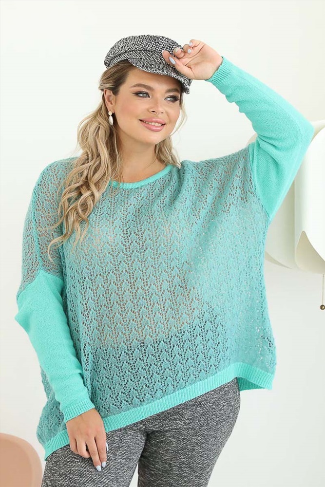 Роскошная туника свободного силуэта зеленого цвета. Туника выполнена в технике ручного вязания из нитей с содержанием мохера. Круглый вырез изделия обработан «чулочной» гладью. Туника с углубленной проймой и втачными рукавами. По низу изделия и рукавов — манжеты.