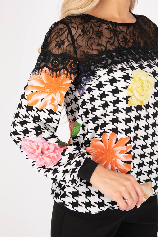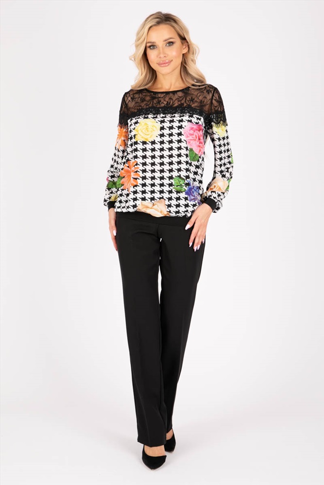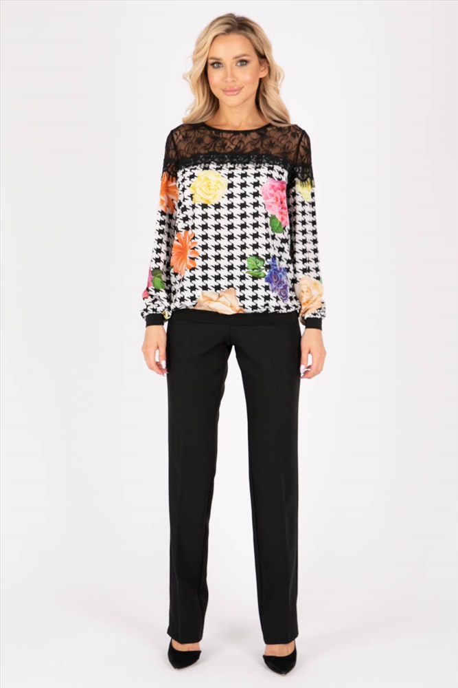 ШтрихКод: 4650333149899 По размеру: 42, 44 Состав: Полиэстер 95% Эластан 5% Скидка на сайте: 50% Срок готовности: 2019-02-04T00-00-00 Яркий джемпер свободного силуэта из трикотажного полотна черно-белого цвета. Круглый вырез изделия обработан окантовкой. Кокетка переда выполнена из кружева. Втачные рукава дополнены кружевом. По низу изделия и рукавов манжетами. Аксессуары в комплект не входят. Длина изделия по спинке от плечевого шва до низа изделия - 60 см. Рост фотомодели-170 см. Комментарии к товару