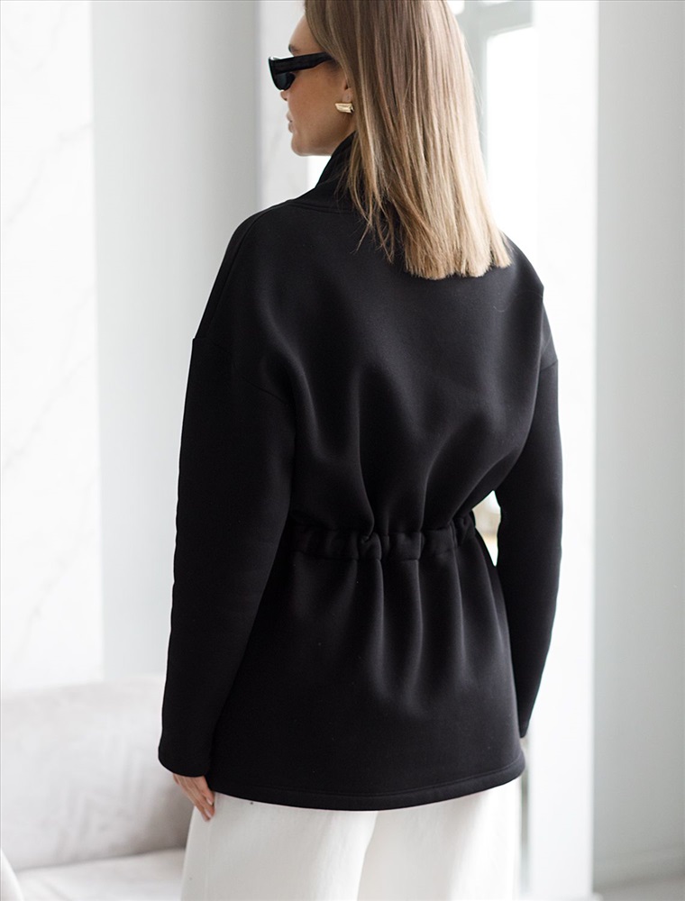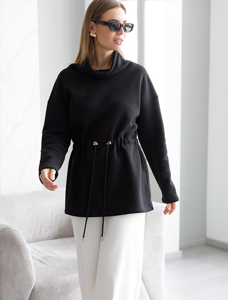Параметры модели на первом фото: Рост 170, бюст 89, талия 63, бедра 92 Джемпер выполнен из премиального футера-трехнитки. Модель с начесом дополнена хлопковым шнуром на талии регулируемым стопперами. Регулируя шнурок можно получить сразу две модели, свободный джемпер прямого кроя и дизайнерское решение с акцентом на талии. Соберите костюм вместе с брюками D44.129 Комментарии к товару