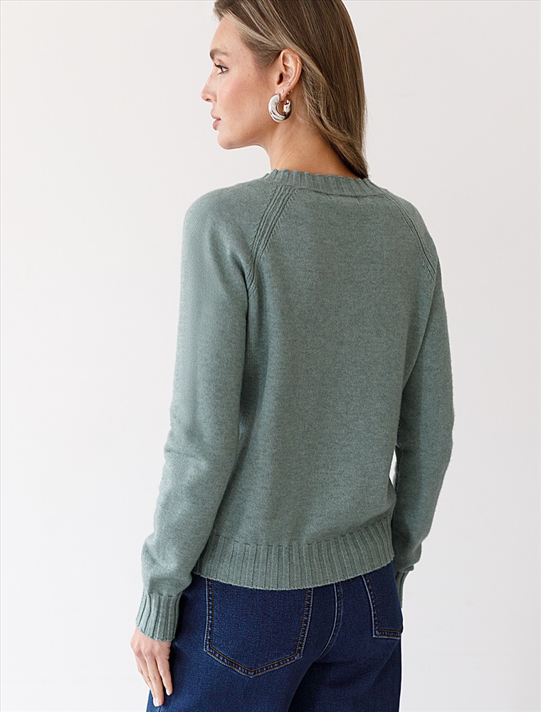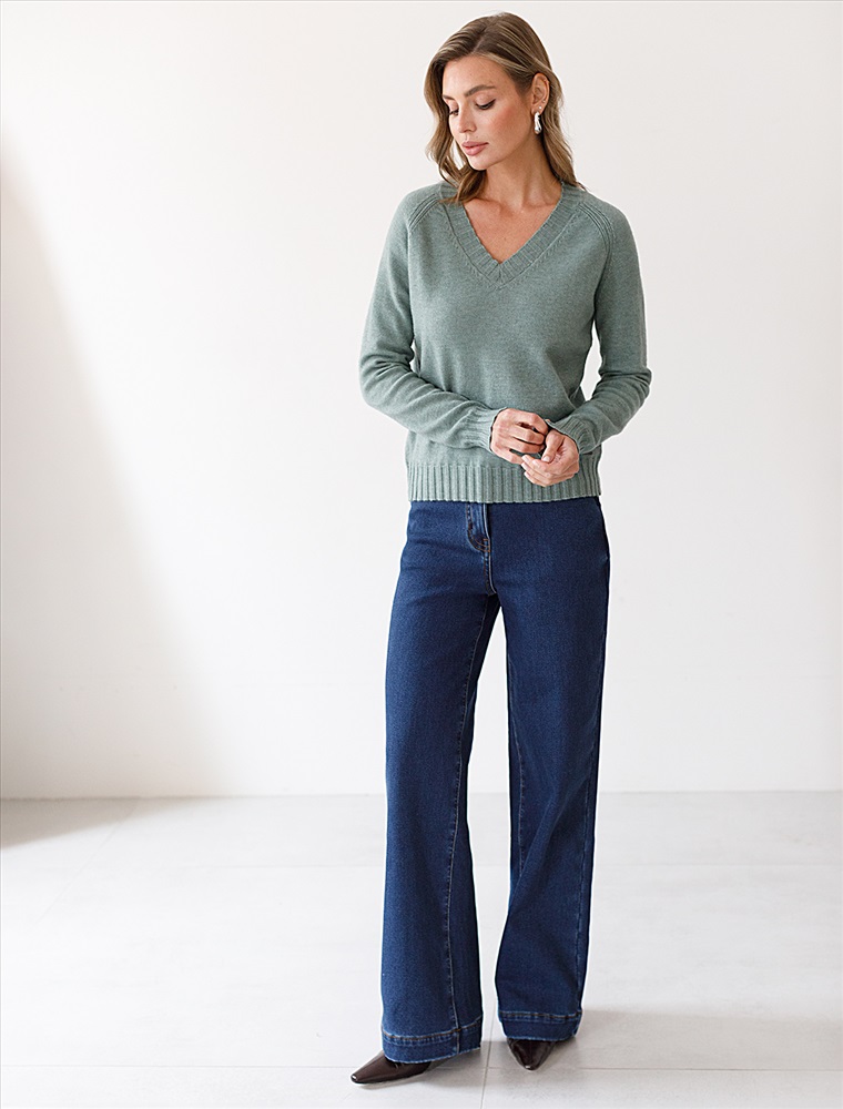 Невероятно женственный джемпер светло-оливкового цвета с V вырезом связан из высококачественной пряжи с кашемиром — идеальное сочетание мягкости и практичности. Пряжа с кашемиром придаёт ему бархатистую нежность и тонкую структуру, каждое прикосновение с которой, напоминает о тепле и уюте в прохладные дни. Благодаря нежной текстуре материала этот вариант отлично подходит даже для чувствительной кожи, не вызывая раздражения и дискомфорта в течение дня. Сдержанный, элегантный силуэт джемпера подчёркивает вкуc обладательницы, а филигранная отделка ворота — внимание к деталям. Универсальный оттенок и изящная мягкость делают его идеальным выбором в любой ситуации. Широкие манжеты и нижний край добавляют аккуратности, а продуманная посадка делает повседневный джемпер удобным для многослойных образов — от офисного комплекта, например, в сочетании с блузкой, до расслабленного уикенда. Свободный крой джемпера идеально подходит для женщин, которые ценят удобство и стиль одновременно, а так же идеально подходит на большие размеры. Благодаря качественной пряже свитер сохраняет форму и внешний вид даже после многократных носок. Практичный фасон идеально подходит для работы в офисе или встреч с друзьями. Благодаря классическому крою джемпер гармонично сочетается практически с любыми элементами гардероба, помогая всегда выглядеть актуально. Сочетается в костюме с брюками D38.013, D38.012 и юбкой D36.016