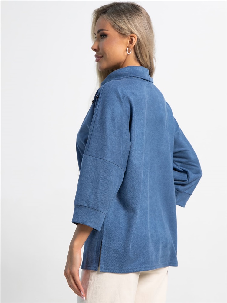 Материал : трикотаж микровельвет Цвет : синий Принт : отсутствует Силуэт : прямой Карманы : отсутствуют Подкладка : отсутствует Вид застежки : без застежки Декоративные элементы : пуговицы Длина : 46 - 69 см,, 48 - 70 см,, 50 - 71 см,, 52 - 72 см Обхват груди : 46 - 108, 48 - 112, 50 - 116, 52 - 120 Обхват бёдер : 46 - 106, 48 - 110, 50 - 114, 52 - 118 Обхват талии : 46 - 106, 48 - 110, 50 - 114, 52 - 118 Дополнительные параметры размеров : 46 - длина рукава Для тех, кто предпочитает комфорт и современный дизайн, этот женский джемпер станет отличным выбором. Он идеально впишется в повседневные образы и подчеркнёт вашу уникальность. Укороченный рукав с манжетом обеспечивает удобство и стильный вид. Джемпер имеет спущенное плечо, а прямой низ с разрезами по бокам придаёт ему особую динамичность и комфорт. В данной модели одно плечо украшено пуговицами. Воротник-хомут добавляет изысканности. Внимание! Рекомендуем ориентироваться на размерную сетку и выбирать свой привычный размер, согласно размерной таблице. *Допуск отклонения длины при массовом производстве 1-3 см является нормой. Уход за изделием: Ручная стирка или стирка в машине при температуре до 30 °C, деликатный режим. Не использовать отбеливатели. Разрешена глажка при температуре до 110 °C. При глажке использовать специальную насадку на подошве утюга, гладить с паром. Не замачивать и не выжимать. Стирать изделие наизнанку, отдельно от других вещей. Комментарии к товару