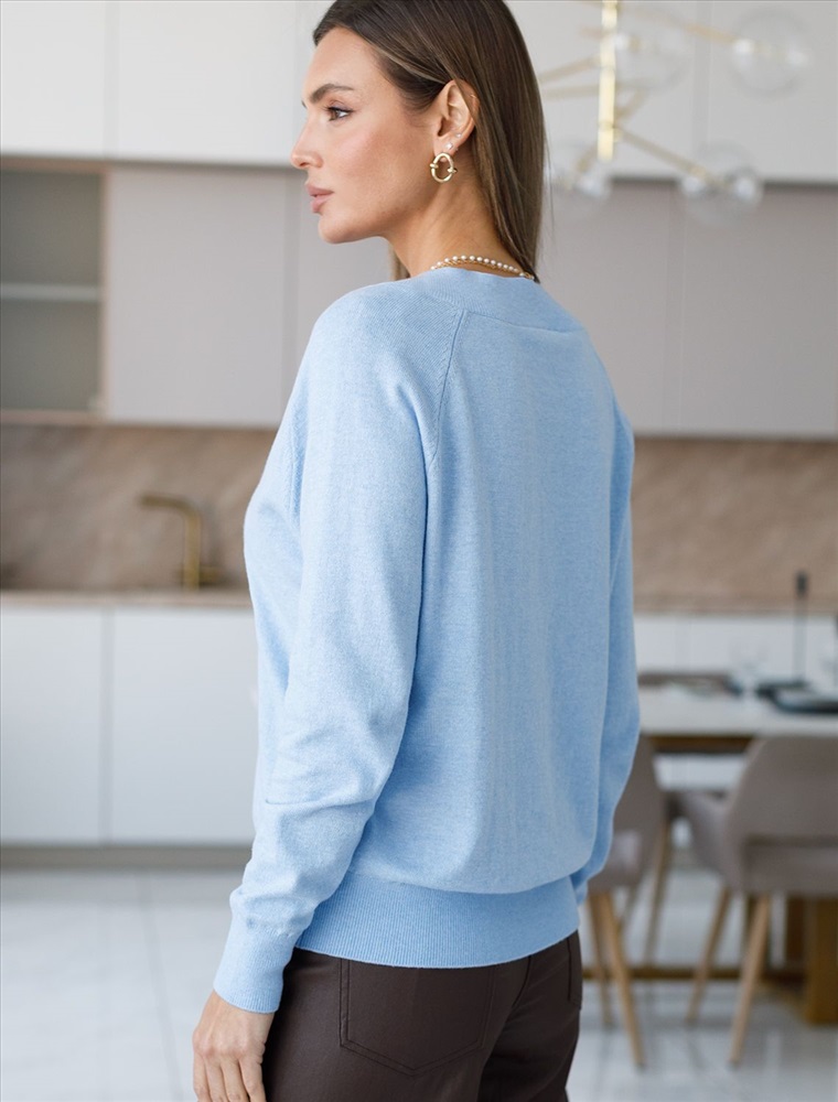 Плотность: 12 GG Размер товара на первом фото: 42 Джемпер тонкой вязки выполнен из хлопка с добавлением кашемира. Модель с V-вырезом свободного силуэта. Мягкая и очень приятная пряжа в рубчик совершенно не колется, сохраняет тепло при этом не перегревая, гарантируя безупречный комфорт. Комментарии к товару