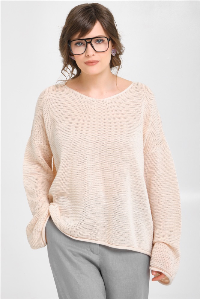 Джемпер вязаный цвета экрю от фабрики Priz. Модель свободного силуэта, вырез горловины V-образный. Рукав длинный. Низ ровный, без разрезов. Комфорт и стиль на каждый день., Оттенок цвета может незначительно отличаться от фото., Ожидание отправки (рабочих дней): 7, Размер модели: 44., Рост модели: 174 см., Состав:, Хлопок 50%, Акрил 50%, Тип ткани:, Вязаный трикотаж
