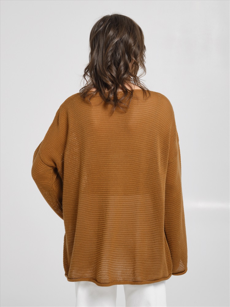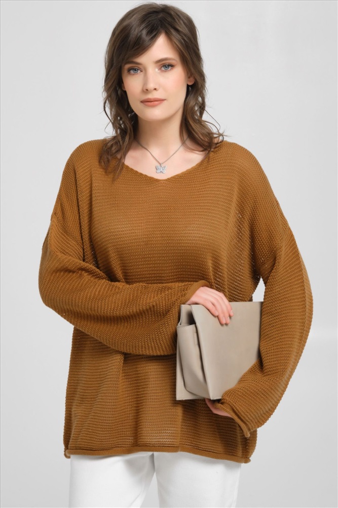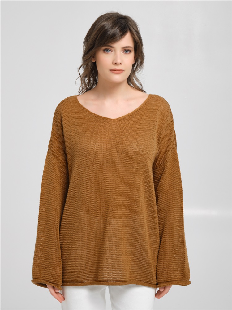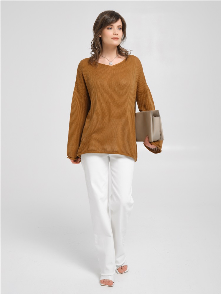 Джемпер вязаный цвета охра от фабрики Priz. Модель свободного силуэта, вырез горловины V-образный. Рукав длинный. Низ ровный, без разрезов. Комфорт и стиль на каждый день., Оттенок цвета может незначительно отличаться от фото., Ожидание отправки (рабочих дней): 7, Размер модели: 44., Рост модели: 174 см., Состав:, Хлопок 50%, Акрил 50%, Тип ткани:, Вязаный трикотаж