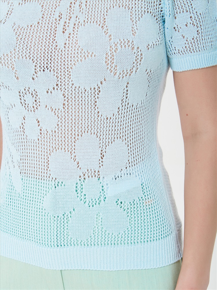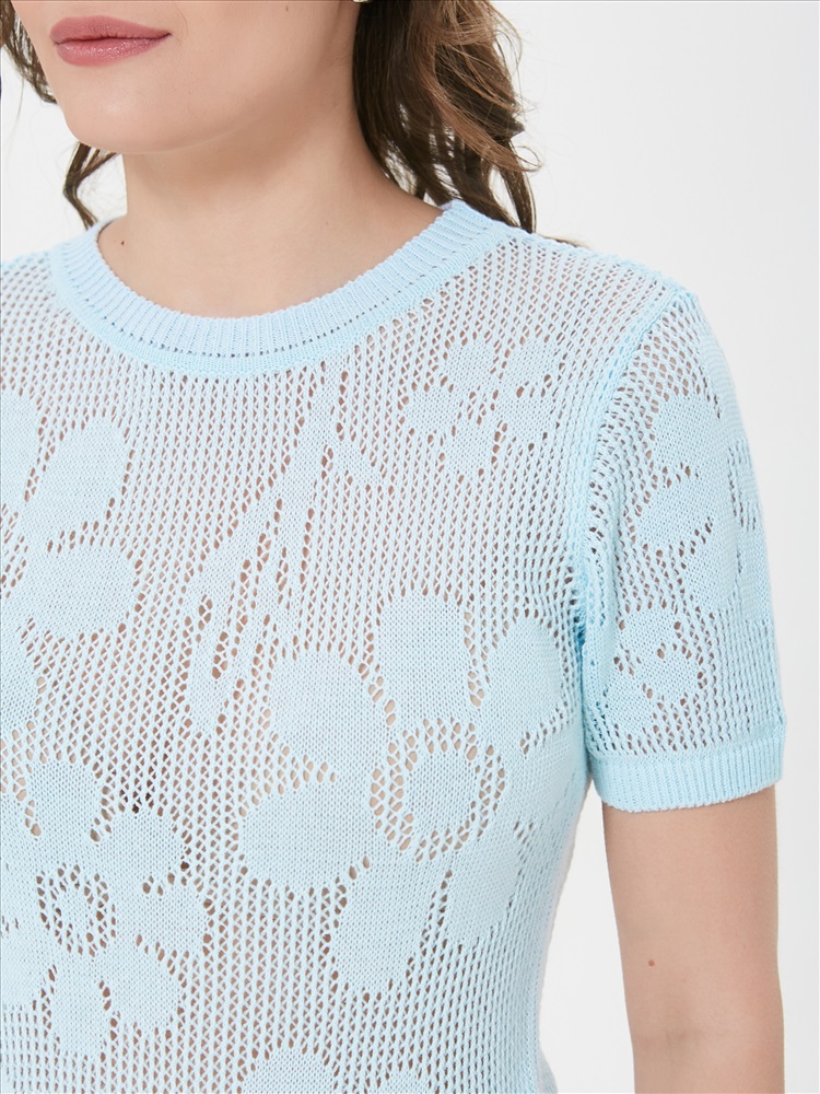 Джемпер вязаный голубой с короткими рукавами от фабрики Priz. Модель прямого силуэта, круглый вырез горловины. Рукав втачной. Комфорт и стиль на каждый день., Оттенок цвета и расположение рисунка могут незначительно отличаться от фото., Ожидание отправки (рабочих дней): 7, Размер модели: 44., Рост модели: 174 см., Состав:, Хлопок 50%, Акрил 50%, Тип ткани:, Вязаный трикотаж