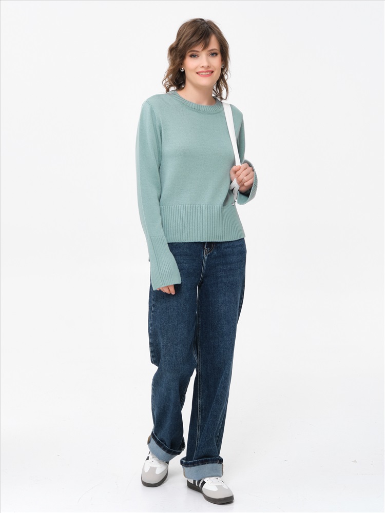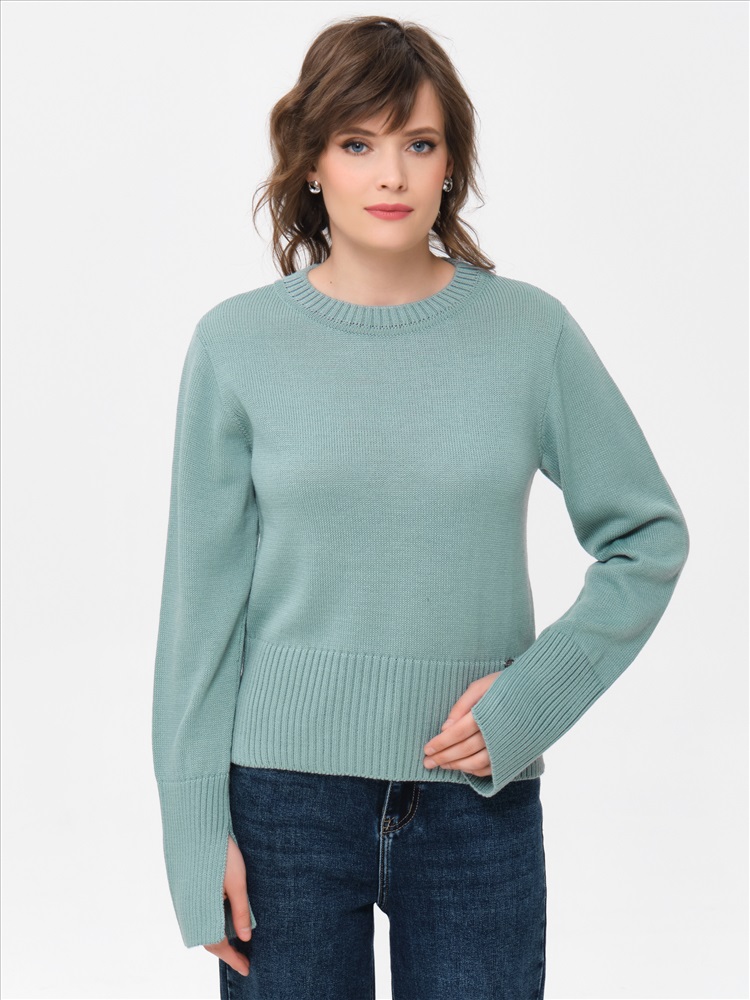 Джемпер вязаный с разрезами на рукавах от фабрики Priz, выполнена в оттенке морская пена. Модель прямого силуэта, с длинным рукавом. Низ джемпера разноуровневый, длиннее по спинке. Комфорт и стиль на каждый день., Оттенок цвета может незначительно отличаться от фото., Ожидание отправки (рабочих дней): 7, Размер модели: 44., Рост модели: 174 см., Состав:, Шерсть мериноса 50%, Акрил 50%, Тип ткани:, Вязаный трикотаж