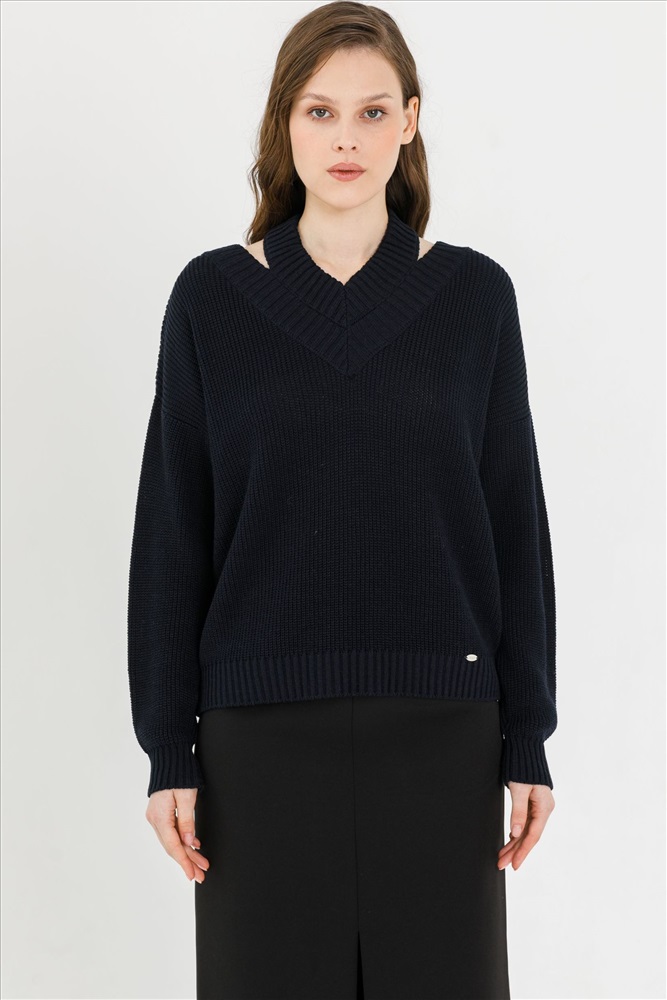 Джемпер вязаный тёмно-синий с длинными рукавами от фабрики Priz. Модель прямого силуэта, Vобразный вырез горловины. Комфорт и стиль на каждый день., Оттенок цвета может незначительно отличаться от фото., Ожидание отправки (рабочих дней): 7, Размер модели: 44., Рост модели: 174 см., Состав:, Акрил 40%, Хлопок 30%, Вискоза 30%, Тип ткани:, Вязаный трикотаж