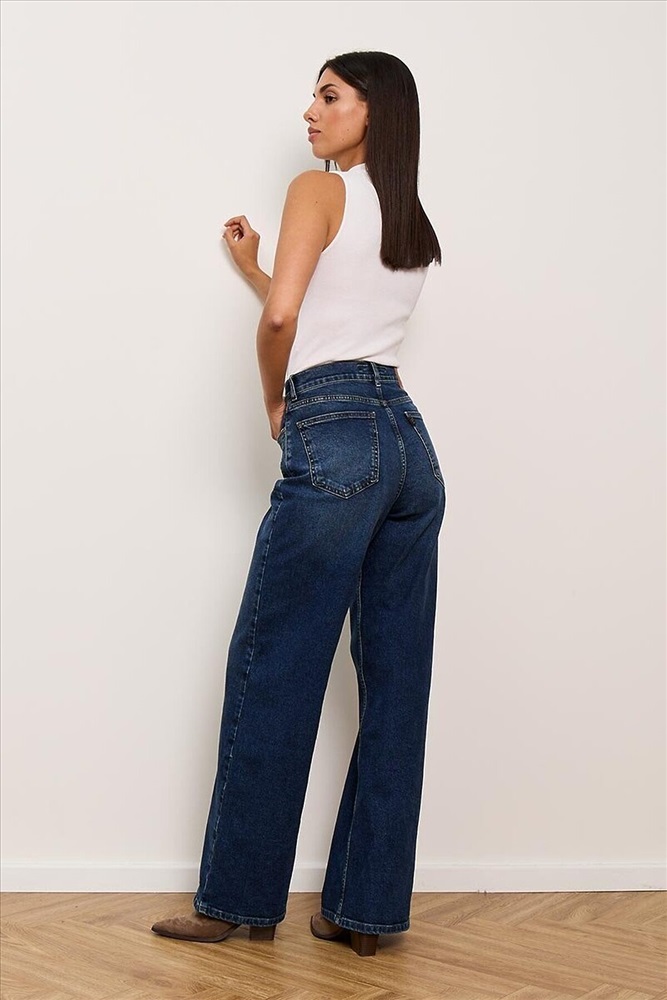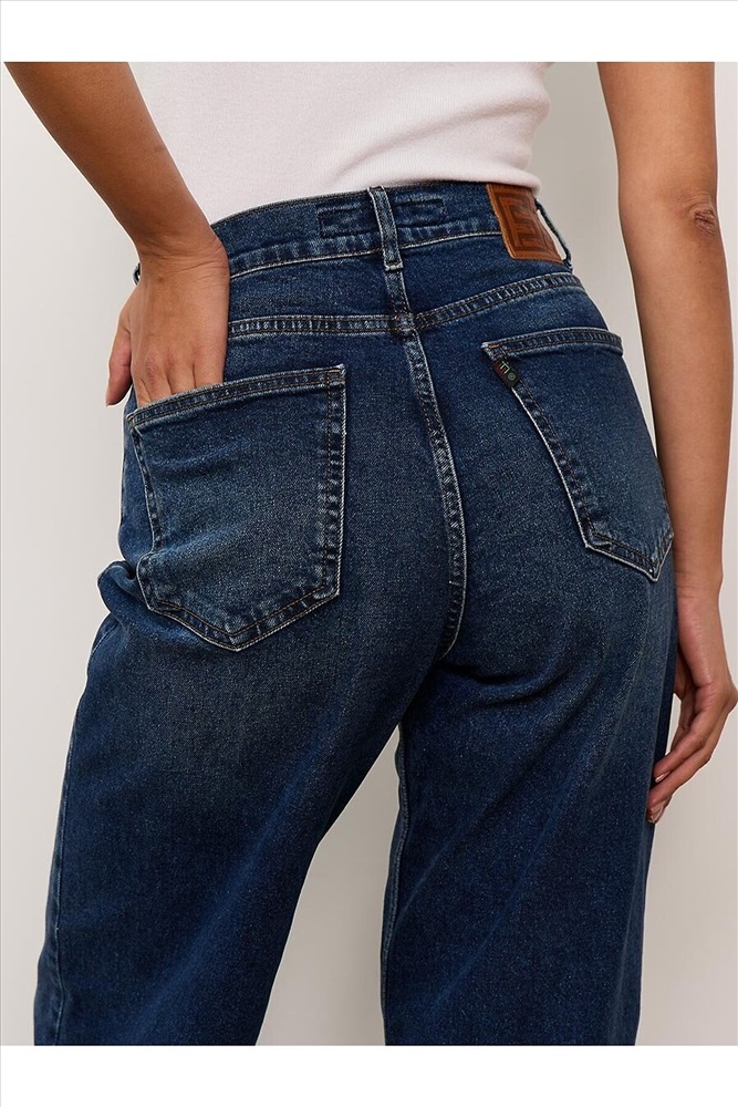 Женские модные джинсы с пятью карманами. Посадка Baggy fit, высокая талия спереди и сзади, широкие штанины по всей длине. Для лучшего облегания в области бедер под передними карманами сделана вытачка. Застежка на молнии. Выполнены из слабоэластичной ткани denim comfort stretch. Средня стирка "stone wash".