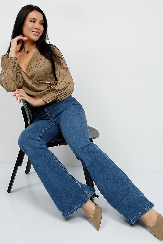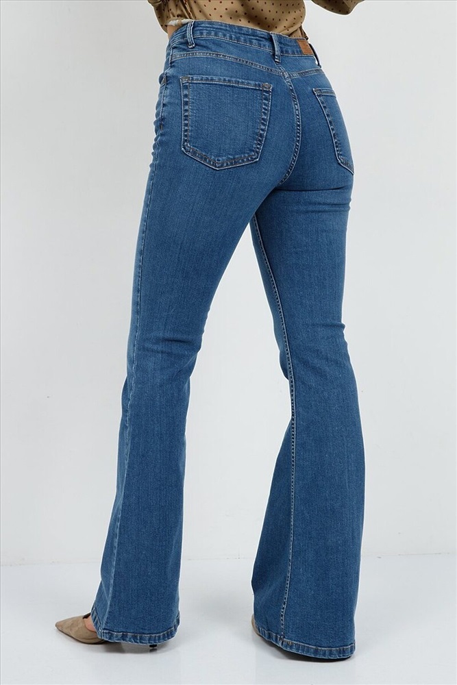 Женские джинсы с пятью карманами. Посадка Slim flare fit (облегающие по бедру и расклешенные от колена), высокая талия. Для улучшения посадки по талии сделан подкройной пояс из 2-х частей. Застежка на молнии. Выполнены из слабоэластичной ткани denim stretch, Средняя стирка ссо слабовыраженными потёртостями и "усами" спереди и потёртостями сзади. Параметры указаны для размера 28. Длина внутреннего шва - 82, 5 см.