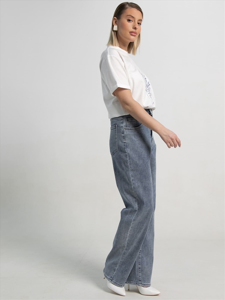 Голубые джинсы прямого кроя — идеальный выбор для стильных и удобных повседневных образов. Два передних кармана и два классических задних добавляют практичности. Эти джинсы легко вписываются в разные модные тренды и отлично сочетаются с любым верхом, создавая множество вариантов.