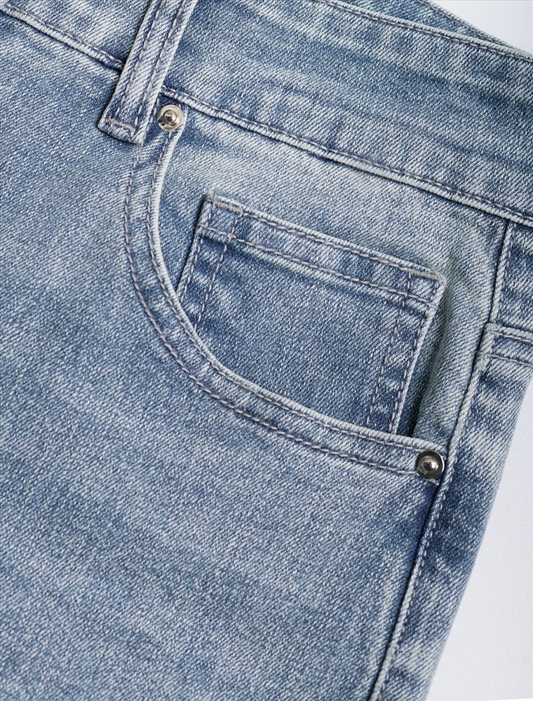 Джинсы клеш от колена расширенные к низу голубого цвета выполнены из эластичного денима плотностью 14,8 OZ, который отлично тянется и мягко садится по фигуре. Цвет денима имеет неоднородную фактуру с эффектом мрамора в виде светлых разводов. Эластичный материал дарит свободу движений, а облегченная ткань делает эти джинсы идеальным выбором на каждый день. Клеш от колена выгодно вытягивает силуэт, визуально удлиняет ноги и подчеркивает округлые бедра, создавая женственный образ без лишних усилий. Джинсы подходят на большие размеры, позволяя чувствовать себя уверенно, специальный крой выгодно выделяет достоинства и мягко маскирует возможные нюансы фигуры.