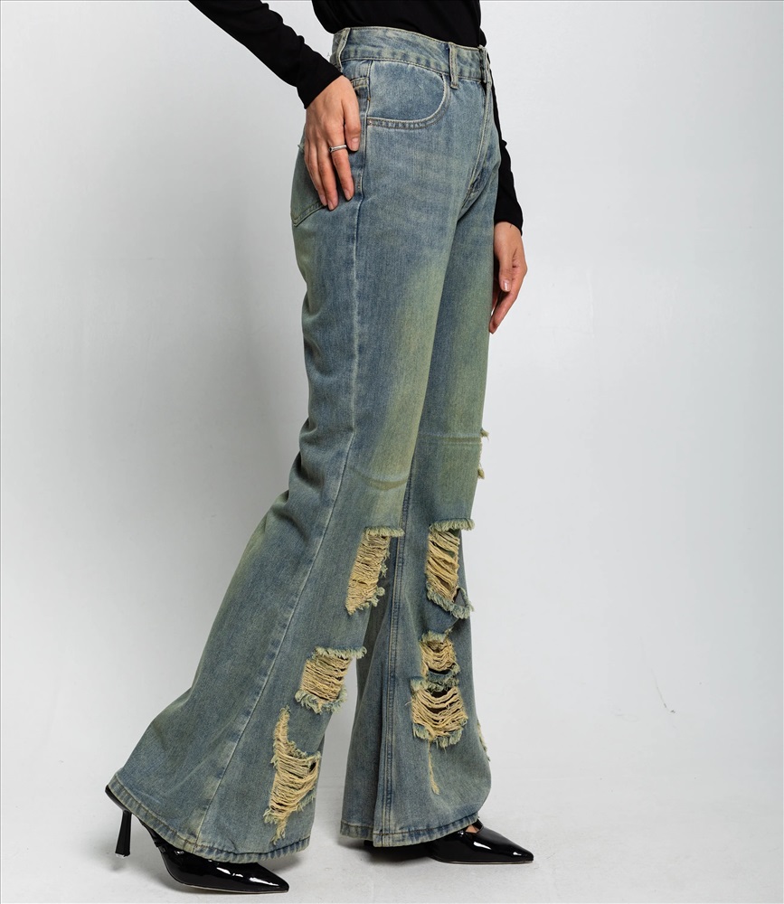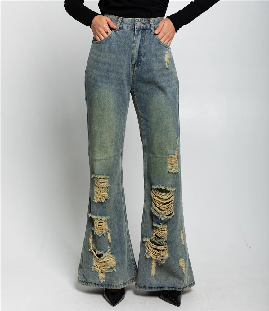Джинсы — часть гардероба, которая подчёркивает привлекательность и индивидуальность каждой покупательницы. Эта модель выполнена из плотного денима с добавлением эластана (90% хлопок, 10% спандекс), что даёт естественную текстуру хлопка и комфортную эластичность, идеально удерживающую форму при носке. Ключевые особенности модели: свободный крой с расширяющимися книзу штанинами, высокая посадка, классический пояс с шлевками для ремня и пуговицей, эффект «рваности» с крупными потертостями и прорехами на бедрах и голенях для модного винтажного образа, плотный материал с выраженной фактурой денима, подчёркивающий стиль и прочность, усиленные швы в зонах повышенной нагрузки, сохраняющие долговечность даже при декоративной обработке. Рост 164 см, 83-61-89.