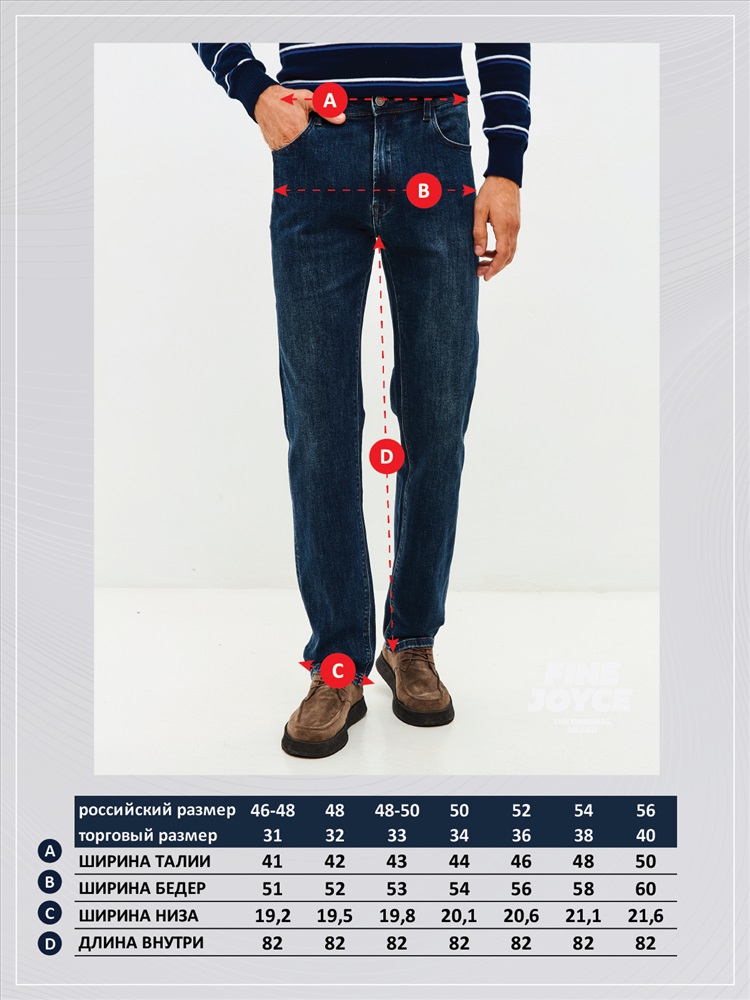 Страна-изготовитель: Россия Состав: 98% хлопок; 2% эластан Тип: Джинсы Уход за изделием: Стирка 30° Бренд: Fine Joyce Цвет: темно-синий Отгрузка: ГТ ТГ: Джинсы Коллекция: AW25-26 Страна: РОССИЯ Базовая модель: Джинсы муж. F521-0156R dark blue Комментарии к товару