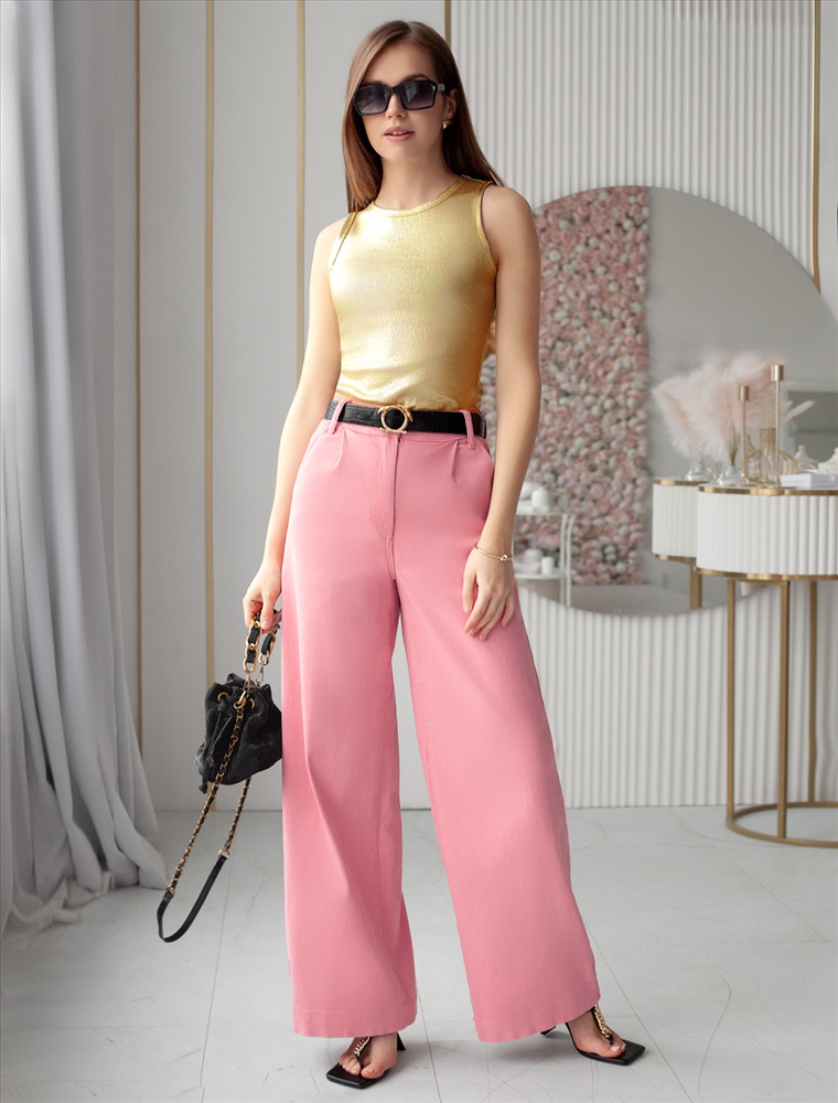 Джинсы-палаццо - трендовая свободная модель исполнена в эластичном дениме. Комфортная посадка на талии и широкий крой визуально вытягивают ноги, скрывая недостатки фигуры. Отлично сочетаются в расслабленном образе с любым верхом. В костюме total-denim с курткой-жакетом D51.013 и курткой-рубашкой D59.008