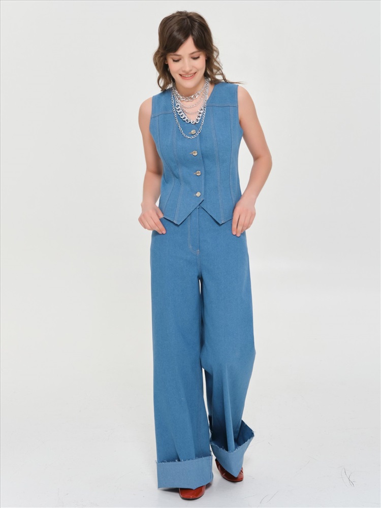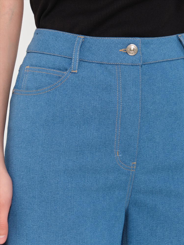 Джинсы широкие синего цвета от фабрики PRIZ. Модель свободного кроя. Пояс подкройной, со шлёвками. Застёжка на молнию и пуговицу на поясе. Сзади кокетки и фигурные накладные карманы. Брюки декорированы хольнитенами и отделочными строчками. Низ джинс с необработанными срезами. Замечательный вариант для создания стильного образа., Оттенок цвета может незначительно отличаться от фото., Ожидание отправки (рабочих дней): 7, Длина: по боковому шву в 42 р-ре - 112 см, в 5 2р-ре - 113 см., Размер модели: 44., Рост модели: 174 см., Состав:, Хлопок 55%, Полиэстер 41%, Эластан 4%, Тип ткани:, Джинс