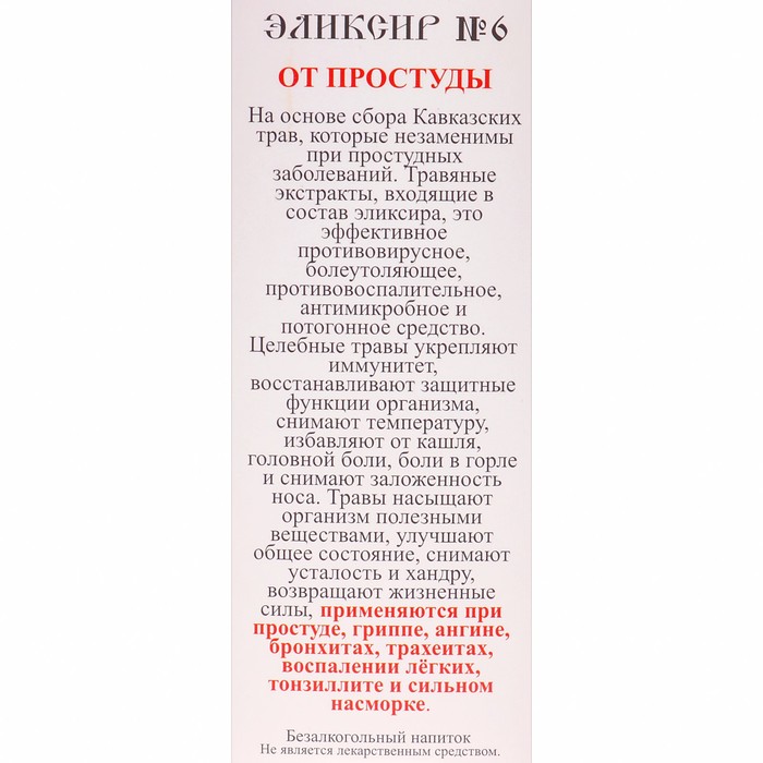 Производитель: Бизорюк; Габариты: 4,5 x 3 x 11,5; Страна: Россия; В боксе: 60 шт; Состав: См. на упаковке; Материалы: см. на упаковке; Фасовка: по 1 шт; Индивидуальная упаковка: Картонная коробка / упаковка; Габариты товара: 5 см × 3 см × 12,5 см; Сертификат: ЕАС; Вес, г/Объём, мл: 100; Темпер. ограничение НЕ НИЖЕ ℃: 0; Назначение: При простуде и гриппе; Для кого: Универсальный; Необходимое количество флаконов на курс: 4; Форма выпуска: Сироп; Действующие вещества: Экстракт; Показания: Профилактика гриппа и простуды, Простуда; Компоненты: Мята, Ромашка, Шиповник, Солодка, Мёд; Действие: Обезболивающие, Противовоспалительные, Противомикробные