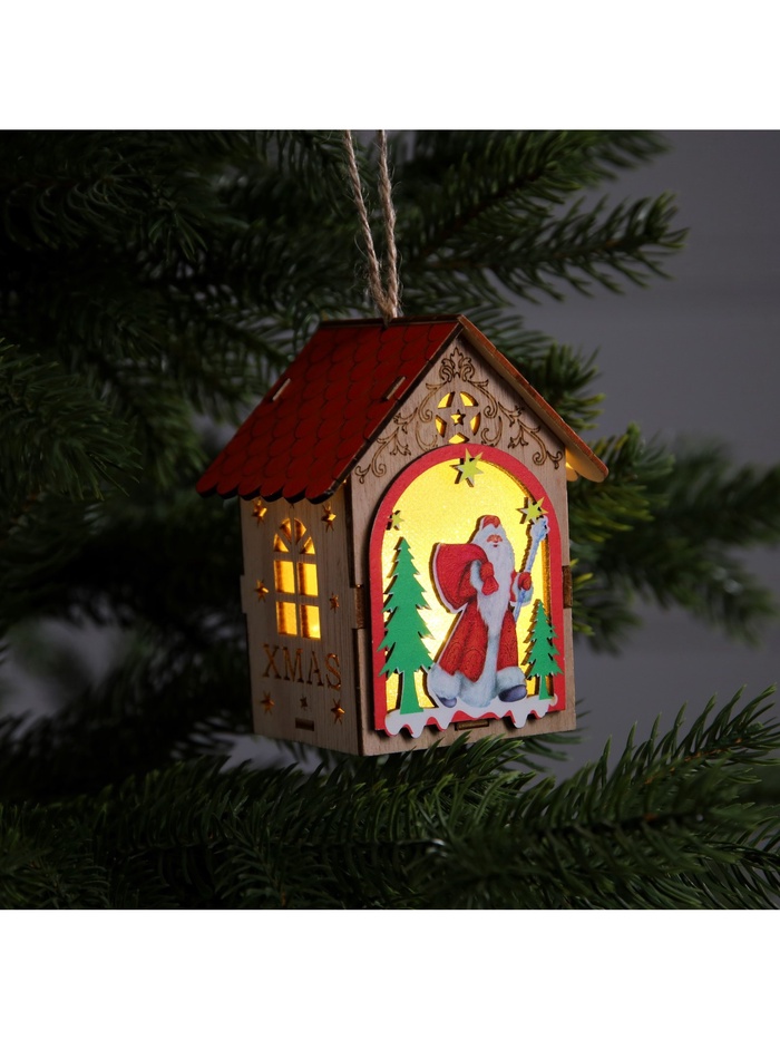 Изготовленный из дерева, этот домик с Дедом Морозом освещает пространство тёплым белым свечением, создавая атмосферу праздника и сказки. Благодаря встроенному светодиоду, работающему от батареек, домик будет мягко светиться, добавляя волшебства в ваш интерьер. Размеры 11x8.5x7.5 см делают его идеальным для размещения на ёлке или в качестве декоративного элемента на полке.