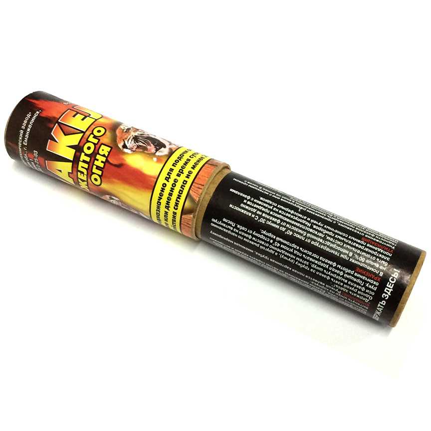 Описание: Сигнальный факел, или фальшфейер, дает устойчивое, ослепительно яркое пламя желтого цвета. Используется не только в качестве развлечения, но и для практических целей - чтобы подавать сигнал в ночное время. Такие фальшфейеры применяются моряками, альпинистами, спасателями. Факел полностью соответствует нормативным требованиям ТУ 7275-001-99276836, ГОСТ Р 51270-99. Для активации факела требуется резким движением выдернуть чеку (кольцо), и сразу же направить факел в сторону от себя и окружающих. Эффекты: 1. Желтый огонь. Комментарии к товару