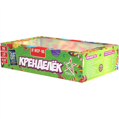 Для душевного семейного вечера прекрасно подойдет недорогой веселый и очаровательный салют с забавным названием Кренделек. Яркие, декоративные, постоянно меняющиеся огоньки создаются от непрерывного потока выстрелов. За 60 секунд 96 залпов! В красочной коробке ракеты совсем небольшого, но разного калибра, от этого фейерверк становится очень привлекательным.