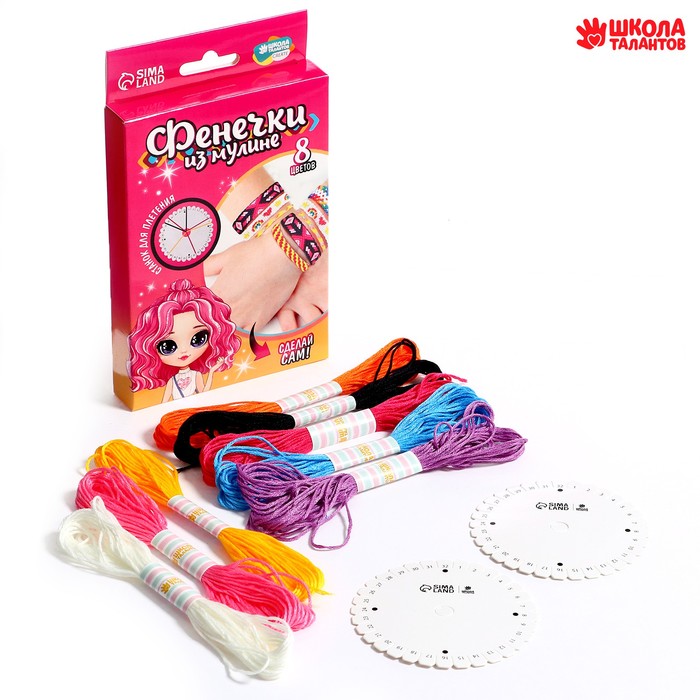 Производитель: Школа талантов; Габариты: 17,7 x 10,7 x 2; Страна: Китай; В боксе: 192 набор; Состав: Картон, текстиль; Материалы: картон, текстиль; Фасовка: по 1 набор; Индивидуальная упаковка: Цветная коробка; Габариты товара: 11 см × 1,5 см × 18 см; Сертификат: Не подлежит сертификации; Для кого: Для девочки; Возраст: От 7 лет; Символ года: Нет; Тематика праздника: 8 Марта, День защиты детей; Материал: Текстиль; В комплекте: Нитки, Трафарет; Для создания: Браслеты