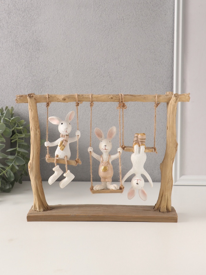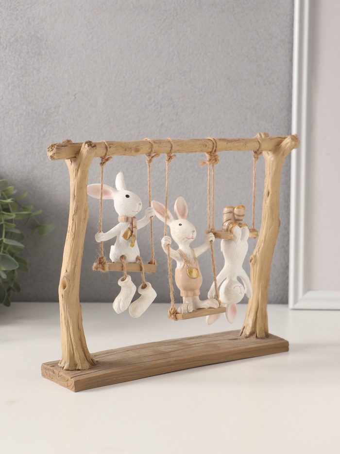 Эта бело-золотая фигурка с тремя кроликами на качелях создаёт мгновенное ощущение нежности и лёгкости. Композиция передаёт трогательную дружбу и беззаботность, делая её идеальным акцентом для создания уюта в интерьере. Статуэтка станет изящным подарком к Пасхе или просто тёплым знаком внимания для ценителя тонких деталей.