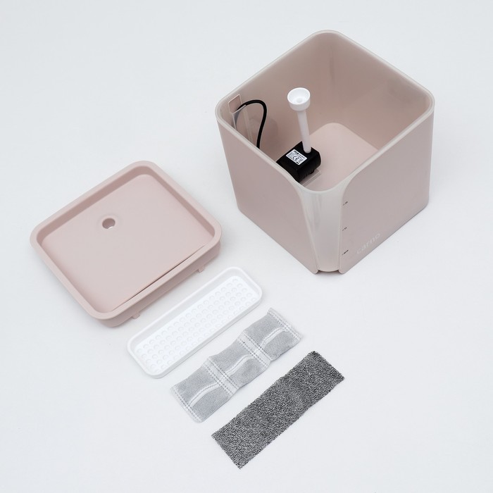 Подача воды: фонтанчик работает при подключение в сеть, что позволяет поддерживать постоянный поток свежей воды. Объём 2 литра.