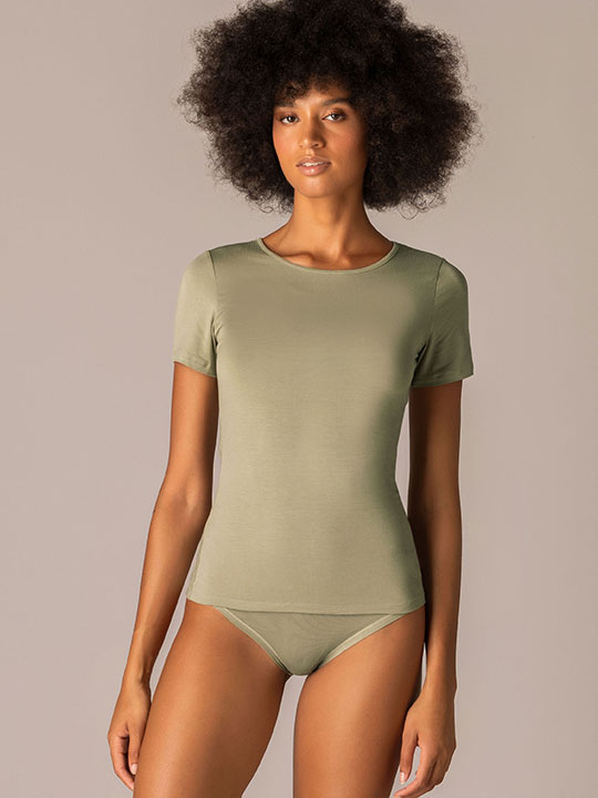 Футболка с круглым вырезом и коротким рукавом. Выполнена из модала.
