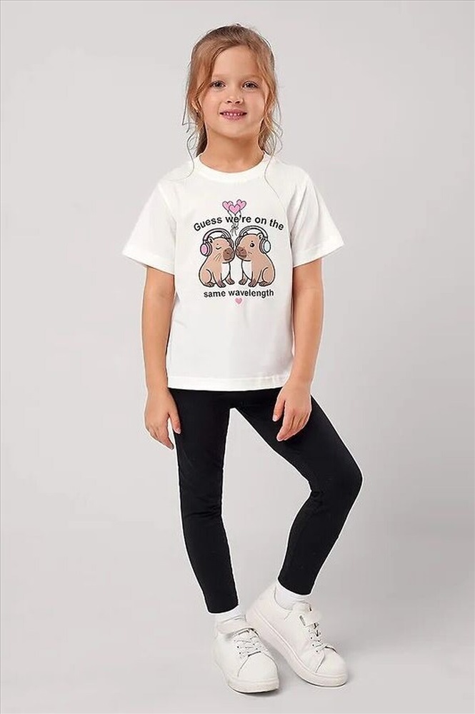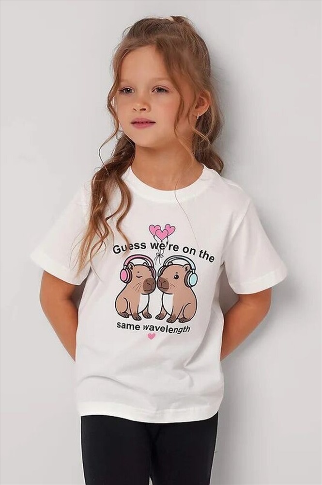 Базовая футболка из 100% хлопка- незаменимая вещь в гардеробе каждой юной модницы! Качественные материалы, комфортная посадка по фигуре и милый принт! Состав: 100% Хлопок
