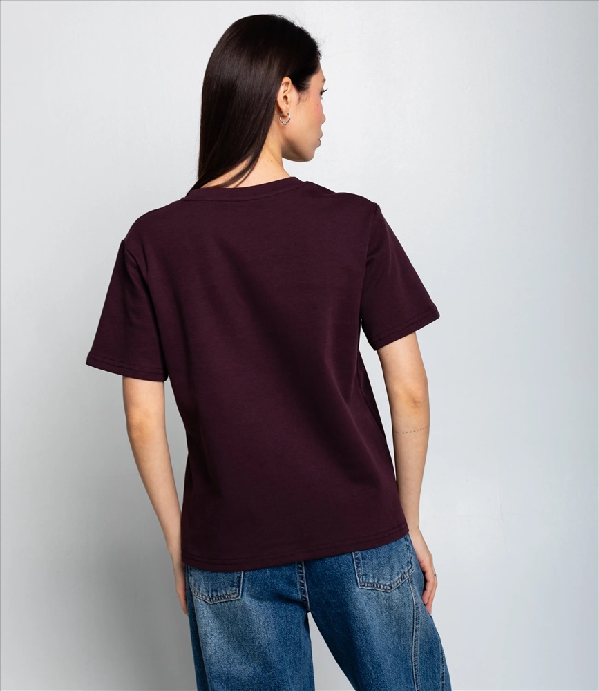 Эта футболка — прекрасный выбор для вашего магазина, предлагая стильный и универсальный дизайн, который станет отличным дополнением к гардеробу ваших клиентов. Футболка — прямого свободного кроя с круглым втачным вырезом горловины и укороченными рукавами, длиной до линии бедер; плечевые швы смещены в естественное положение, облегание свободное по туловищу, подол ровный. Ткань однотонная, плотная трикотажная гладкая с умеренной драпировкой и четкой структурой полотна, без дополнительной текстуры или узора. На левой части груди небольшая аппликация или нашивка в виде миниатюрного декоративного элемента; горловина оформлена двойной подгибкой с прочной строчкой, манжеты рукавов также подшиты узкой подгибкой. Швы боковые и плечевые выполнены стандартной прямой строчкой, отсутствие карманов и декоративных швов, кромка обработана аккуратно, изделие рассчитано на повседневную носку. Выполненная из ткани с 80% хлопка, 15% полиэстер и 5% спандекс, футболка обеспечивает отличное качество и приятные тактильные ощущения. Независимо от сезона, она станет любимым элементом в гардеробе ваших клиентов. На странице сайта доступна таблица размеров, что позволит вашим покупателям легко найти подходящий вариант. Установленная цена делает эту футболку доступной для широкой аудитории, что обеспечит вам высокий уровень продаж. Рост модели: 164, параметры: 83-61-89.