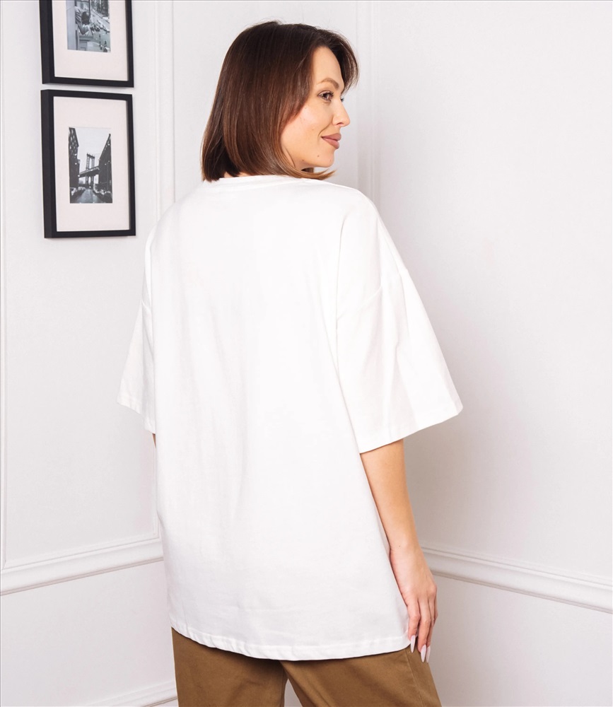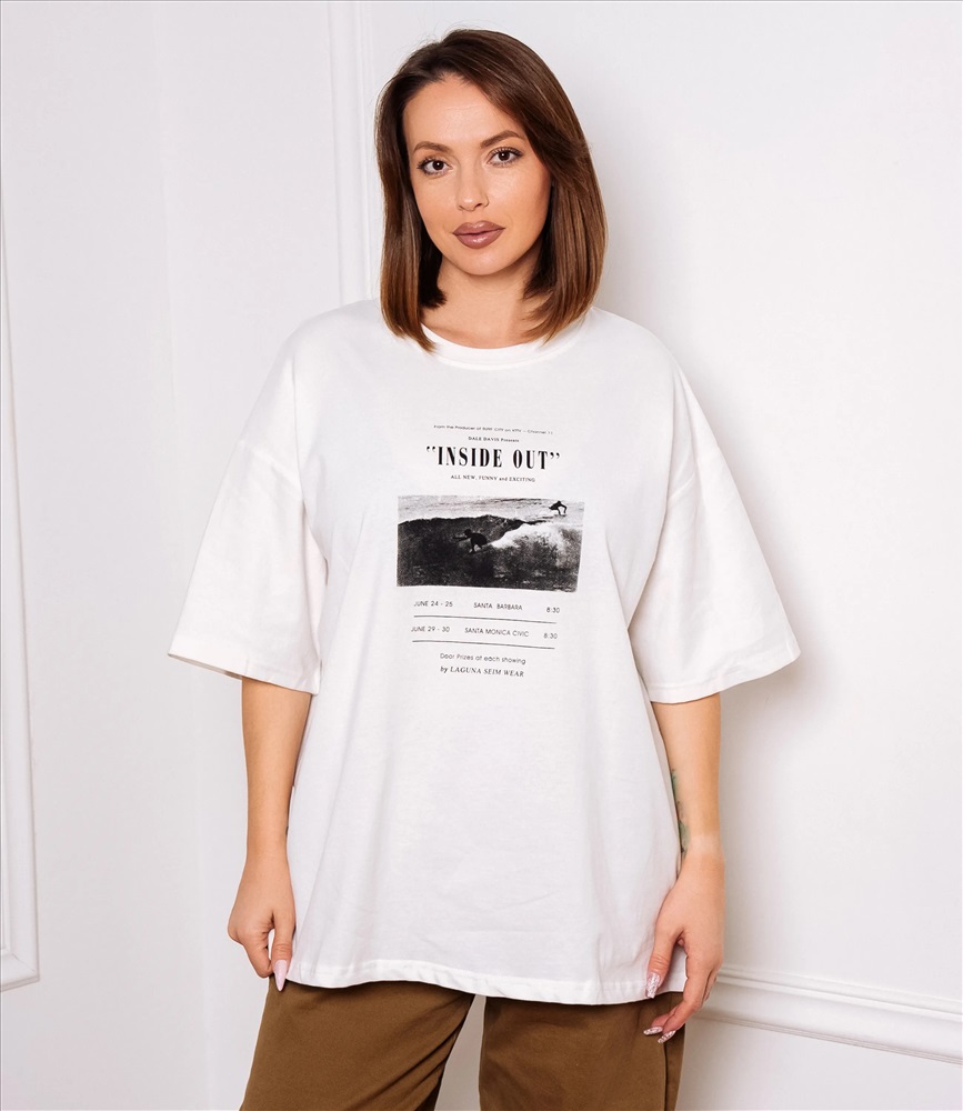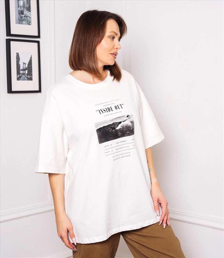 Эта футболка — пречёрный выбор для вашего магазина, предлагая стильный и универсальный дизайн, который станет отличным дополнением к гардеробу ваших клиентов. Футболка свободного оверсайз‑кроя из гладкого трикотажа с круглым плоским вырезом горловины и опущенной линией плеч, рукава средней длины, широкие по объёму; передняя часть декорирована центральным прямоугольным принтом в виде фотографии с несколькими строками мелкого текста над и под изображением. Выполненная из ткани с 100% хлопка, футболка обеспечивает отличное качество и приятные тактильные ощущения. Независимо от сезона, она станет любимым элементом в гардеробе ваших клиентов. На странице сайта доступна таблица размеров, что позволит вашим покупателям легко найти подходящий вариант. Установленная цена делает эту футболку доступной для широкой аудитории, что обеспечит вам высокий уровень продаж.