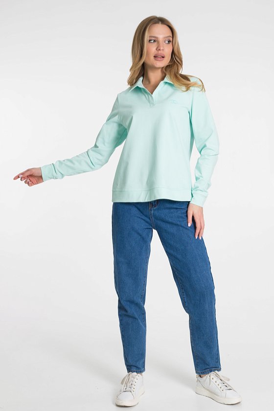 Футболка с длинным рукавом выполнена из полотна "пике" красивого ментолового цвета.