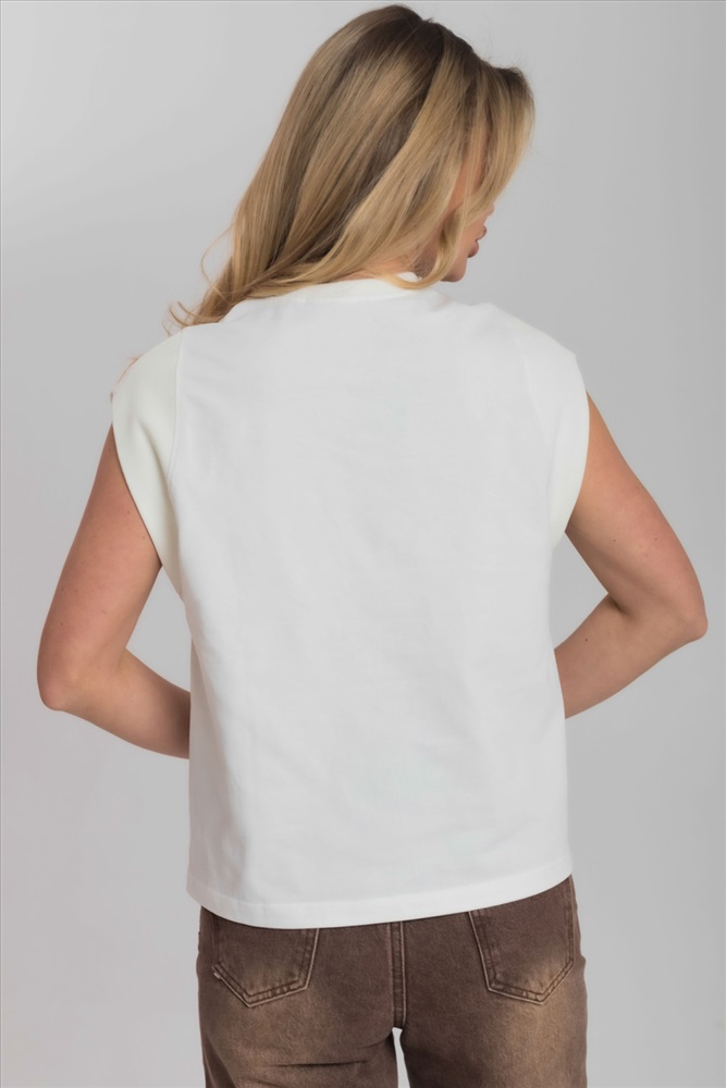 Сезон: Всесезонный Силуэт: Свободный Состав: Хлопок 100% Цвет Номенклатуры: молоко Футболка без рукавов из плотной кулирки — стильная и комфортная базовая модель для повседневного гардероба. Изделие выполнено в нежном молочном цвете, который легко сочетается с одеждой любых оттенков. Свободный силуэт обеспечивает комфорт и не сковывает движений. Круглый вырез горловины и спущенная пройма дополнены планками из кашкорсе, что добавляет модели современный и выразительный акцент. Такая футболка отлично подходит для летних образов, трендовых многослойных сочетаний и домашнего комфорта. Она станет универсальной деталью вашего гардероба. Комментарии к товару