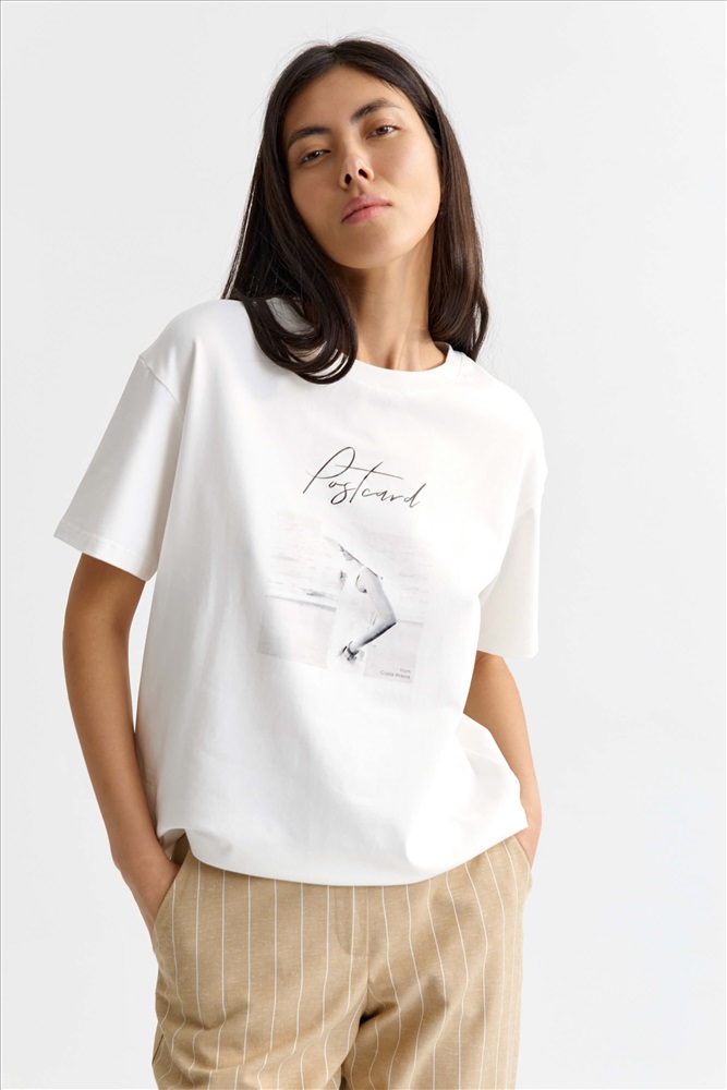Состав: 95% Хлопок 5% Эластан Длина: 55 см (42 размер), 60 см (52 размер) Цветовая гамма: Молочный/принт Силуэт: Свободный Принт: Да Коллекция: Весна #2 Комфортная футболка с авторским принтом из трикотажного полотна. Модель свободного силуэта. Рукав короткий. Горловина обработана бейкой. Комментарии к товару