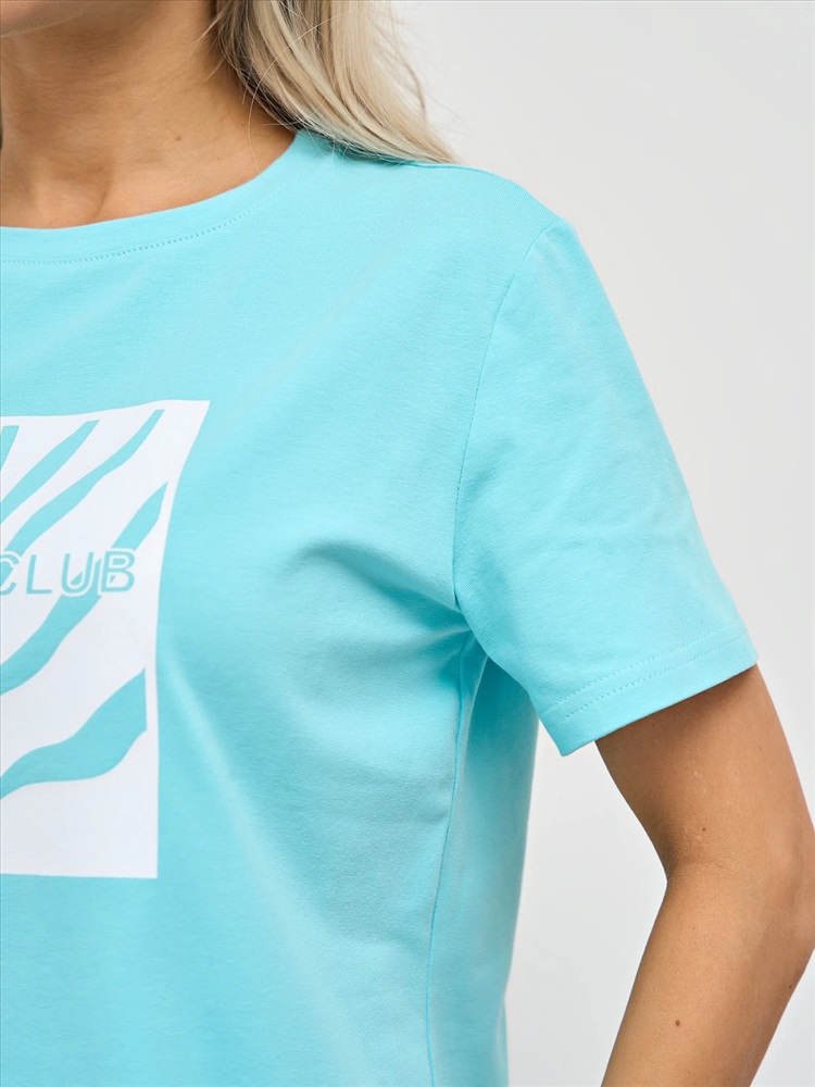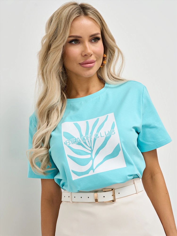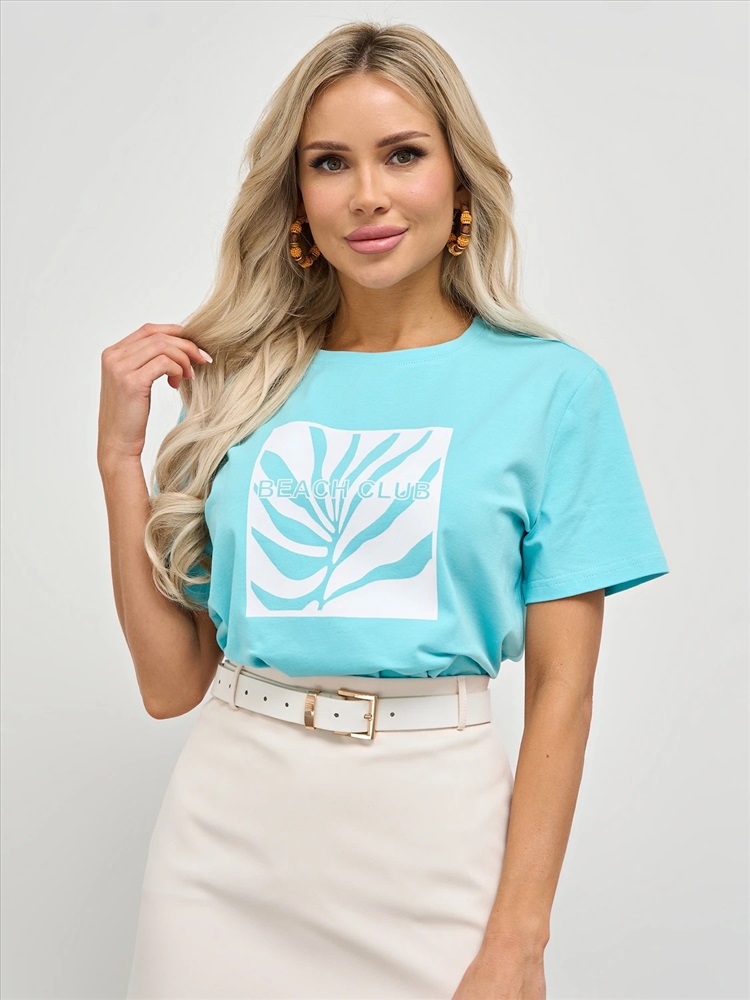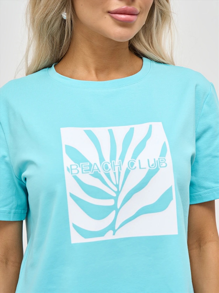 Круглый вырез горловины. Линия плеча слегка спущена. Короткий рукав. Перед изделия декорирован печатным принтом. Комментарии к товару