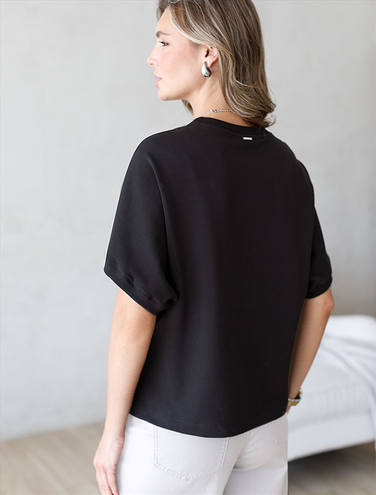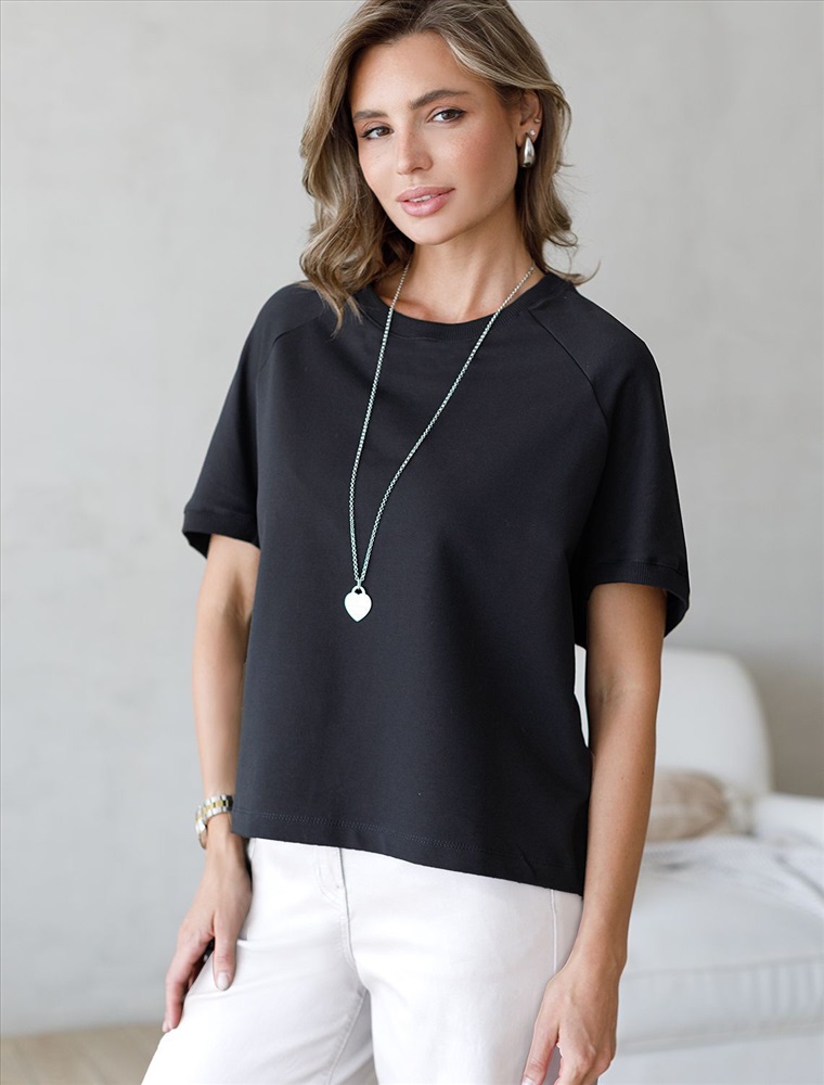 Плотность: 240 Г/м2 Параметры модели на первом фото: Рост 172, бюст 88, талия 64, бедра 88 Футболка черного цвета свободного кроя выполнена из премиального футера двухнитки с эластаном плотностью 240 Г/м2. . Натуральный материал отличается мягкостью и приятной текстурой, позволяя коже дышать и обеспечивая максимальное удобство при носке. Наличие эластана в составе изделия гарантирует абсолютный комфорт и формоустойчивость. Круглый ворот, рукава регланы средней длины и спущенная линия плеча придают футболке стильный и современный вид, делают образ расслабленным и непринужденным, такой вариант отлично сядет на большие размеры. Плотная футболка идеально подходит для повседневной носки и незаменима для тех, кто ценит удобство и свободу движений без компромиссов по стилю. Рекомендуем сочетать с артикулами: D44.164, D49.138, D49.165 Комментарии к товару