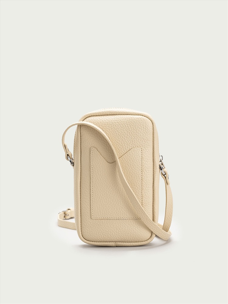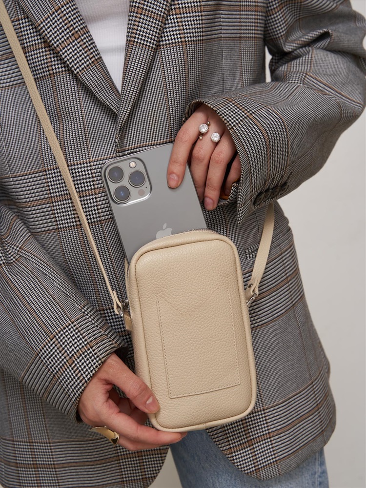 Сумка-футляр для мобильного телефона выполнена из натуральной зернистой кожи. Закрывается на металлическую молнию. Сумка имеет вместительное основное отделение, в нем с комфортом поместится смартфон (внутренний размер 95х160мм), так же имеется дополнительный карман. На внешней оборотной стороне футляра имеется карман из кожи для карт. В комплекте кожаный регулируемый плечевой ремень (min 1300мм, max 1370мм). Цвет фурнитуры:никель. Внутренний материал: микрофибра. Внешний размер: 110х165х035мм. Упаковка: мешок спанбонда.