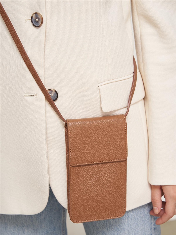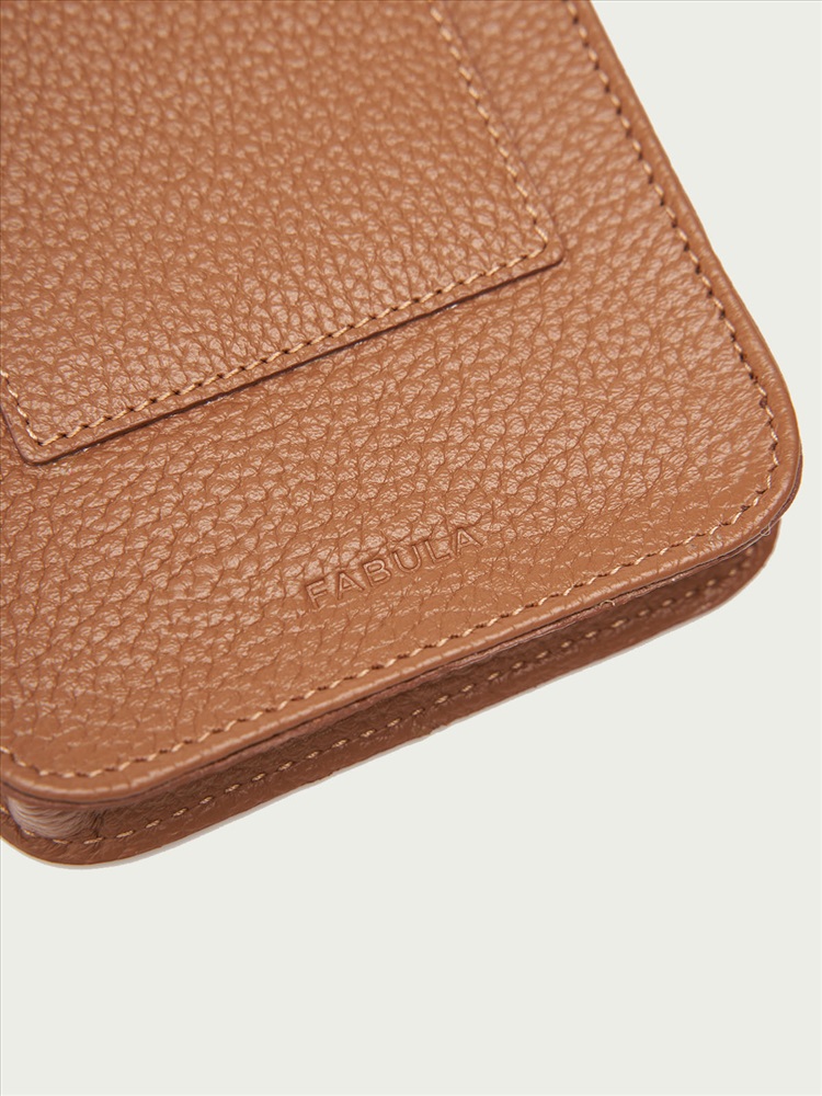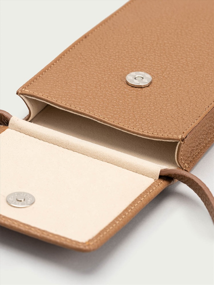 Сумка-футляр для мобильного телефона выполнена из натуральной кожи. Закрывается клапаном на кнопку-магнит. Футляр имеет вместительное основное отделение, в нем с комфортом поместится смартфон (внутренний размер 085х160мм). На внешней оборотной стороне футляра имеется карман из кожи для карт. В комплекте кожаный регулируемый плечевой ремень (min 1220мм, max 1300мм). Внешний размер: 100х180х020мм. Цвет фурнитуры:никель. Внутренний материал: микрофибра. Упаковка: мешок спанбонда.